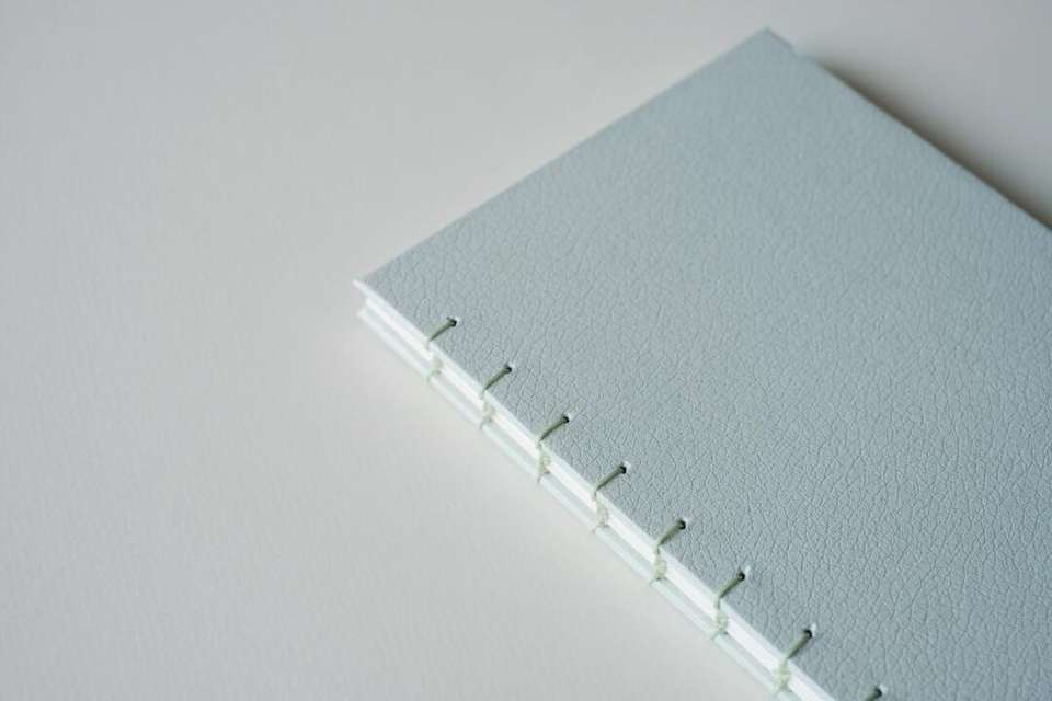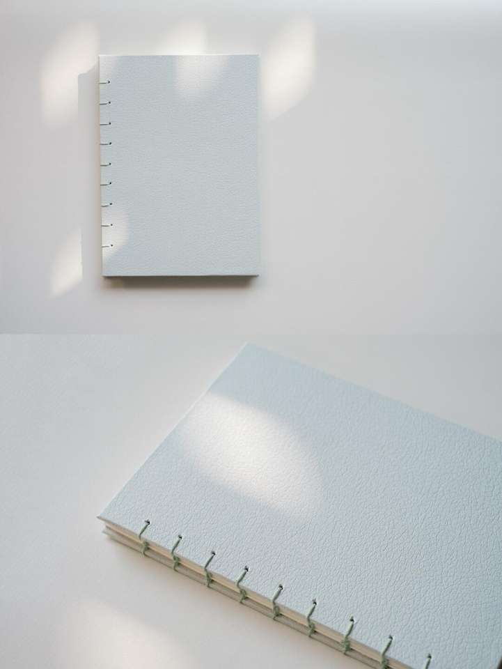 สมุดบันทึกปกหนังแท้แบบสั่งทำพิเศษ ดีไซน์เรียบหรู พร้อมการเย็บแบบคอปติก และลวดลายสีน้ำเงินเรียบง่าย
