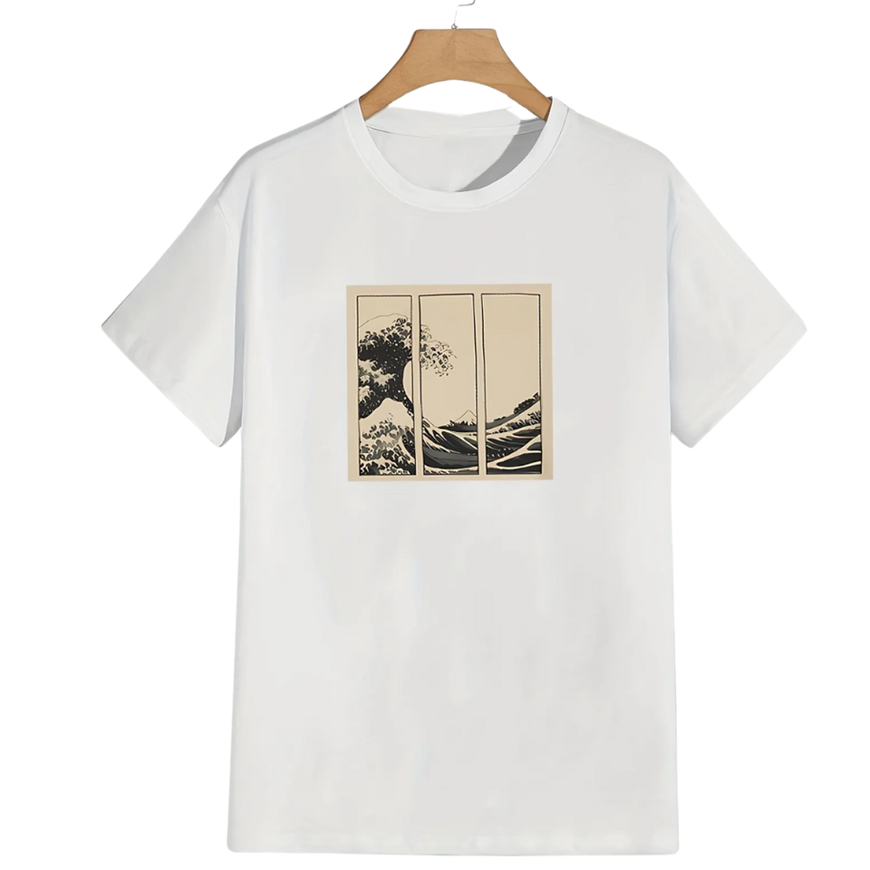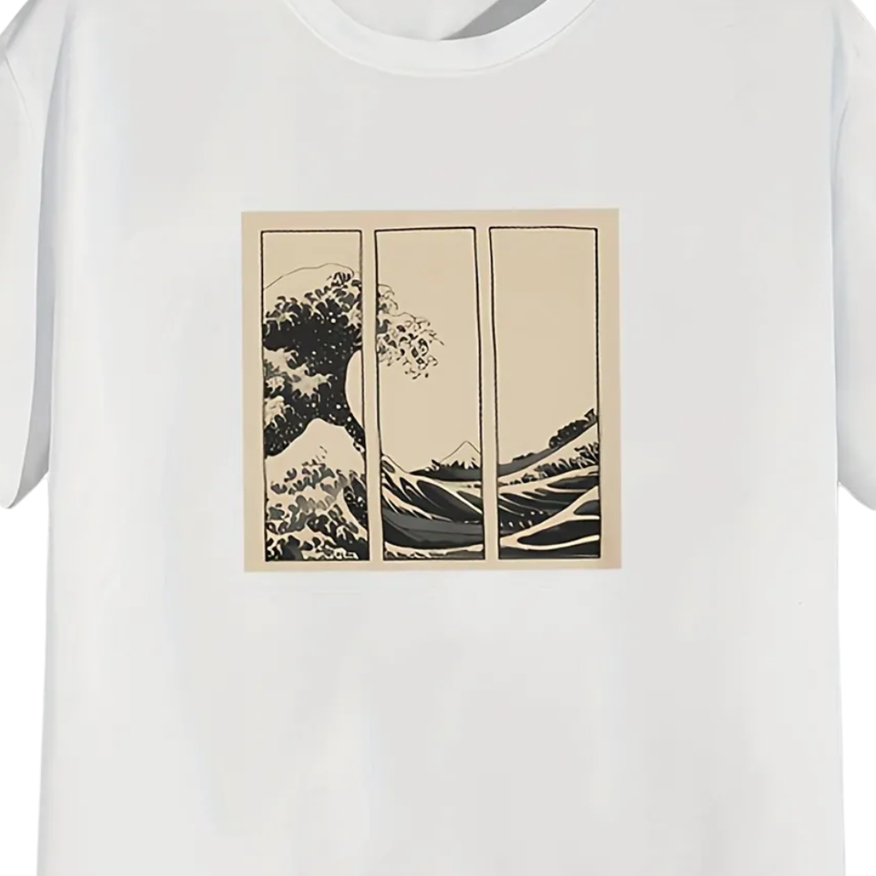 เสื้อยืดลายกราฟิกศิลปะคลื่นญี่ปุ่นขนาดเล็กเสื้อยืดผ้าฝ้ายแนวสตรีทไซส์ใหญ่พิเศษแบบลำลองสำหรับทุกเพศฤดูร้อน