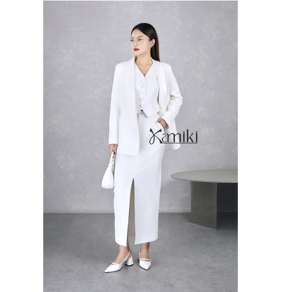 กระโปรงทรงเอ midi ผ่าหน้า สไตล์วินเทจ เอวสูง ผ้าเนื้อดี รุ่น Minimal Maxi Standard Vietnam สำหรับสาวออฟฟิศ หรือใส่ลำลอง KV27