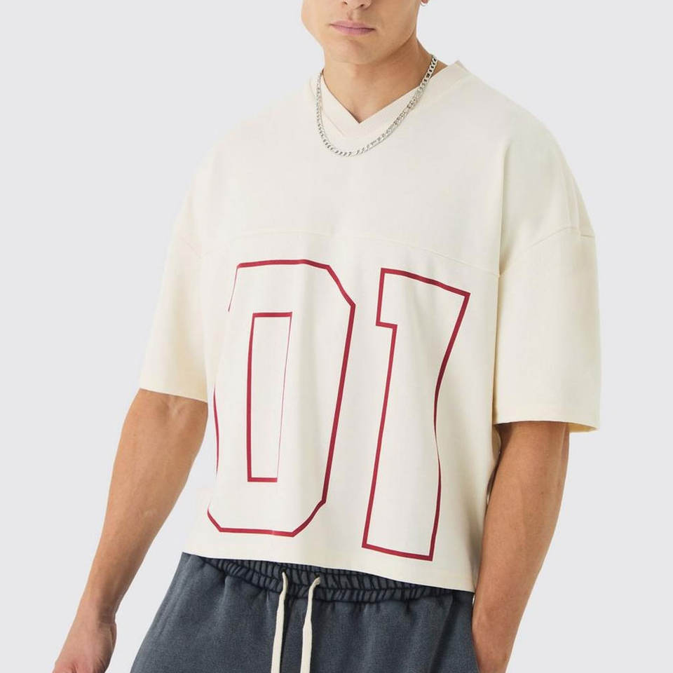 เสื้อยืดผ้าตาข่ายคอวีขนาดใหญ่พิเศษของผู้ชายผ้าคอตตอนเนื้อ100% แห้งเร็วระบายอากาศได้ดี