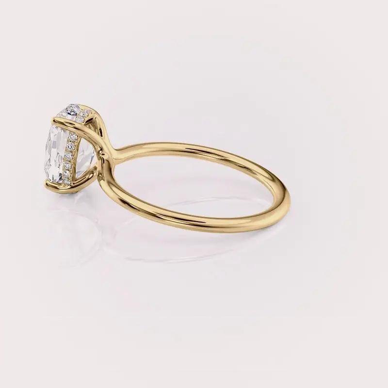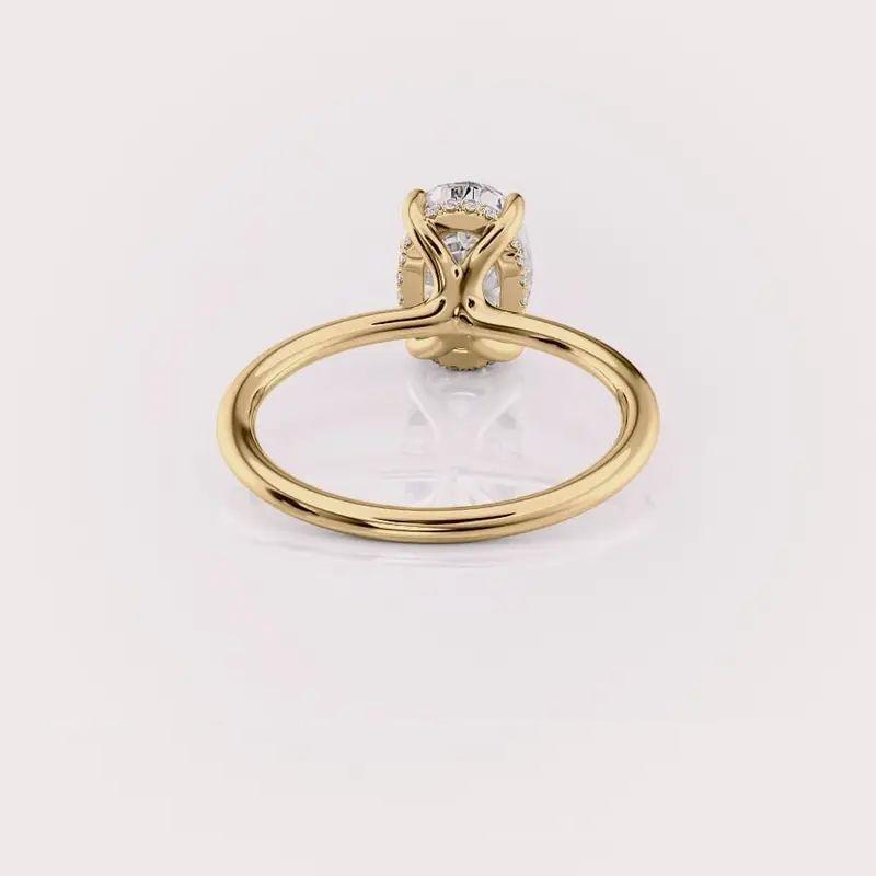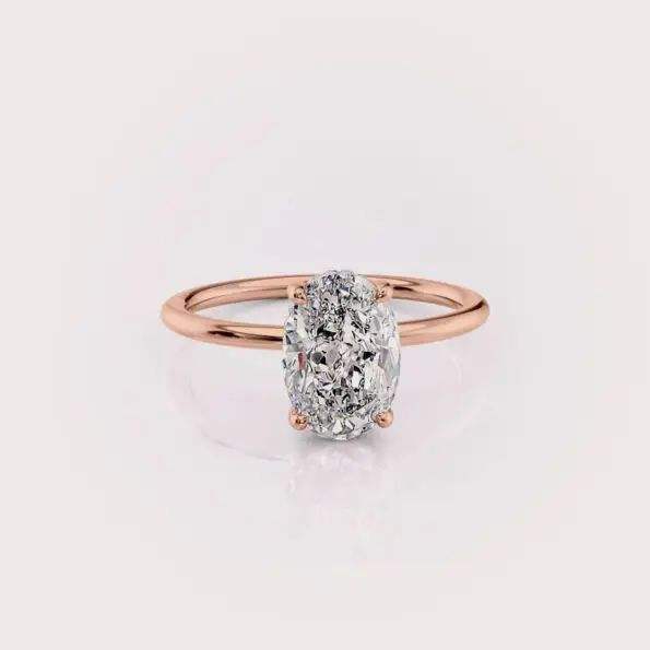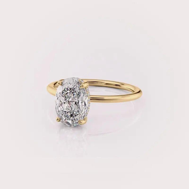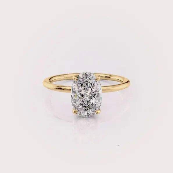 แหวนหมั้นเพชรรูปไข่ทรงมินิมอล ผลิตในห้องปฏิบัติการ ตัวเรือนทองคำแท้ 9 กะรัต สีเหลือง/โรสโกลด์/ไวท์โกลด์