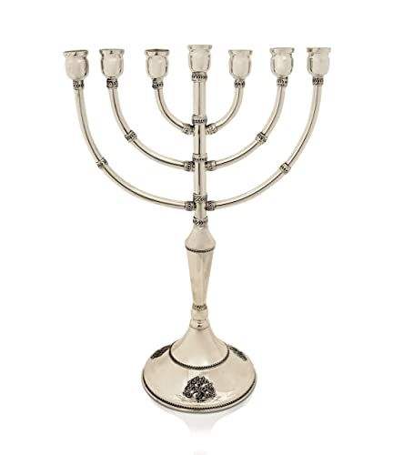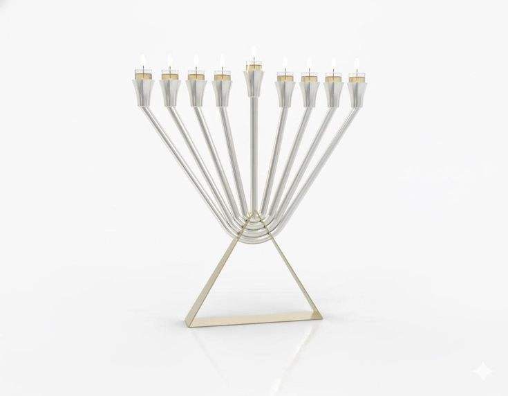 เชิงเทียนเงินทรงแบนแบบมินิมอล โครงสร้างเหล็ก ดีไซน์ทันสมัย สำหรับตกแต่งภายในในวันฮานุกกะ
