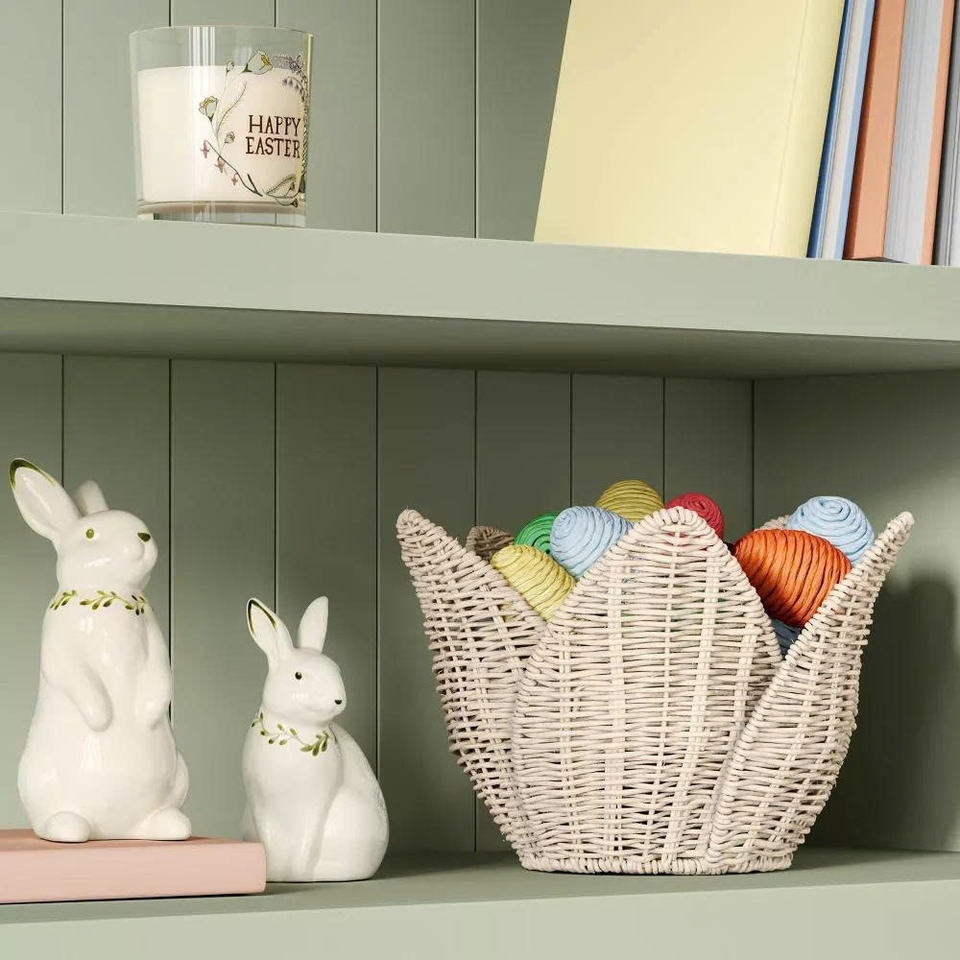 ตะกร้าหวายสีขาวทรงทิวลิป สไตล์มินิมอล งานแฮนด์เมด สำหรับจัดระเบียบบ้าน ตะกร้าหวายใส่ผัก ของใช้ในครัว