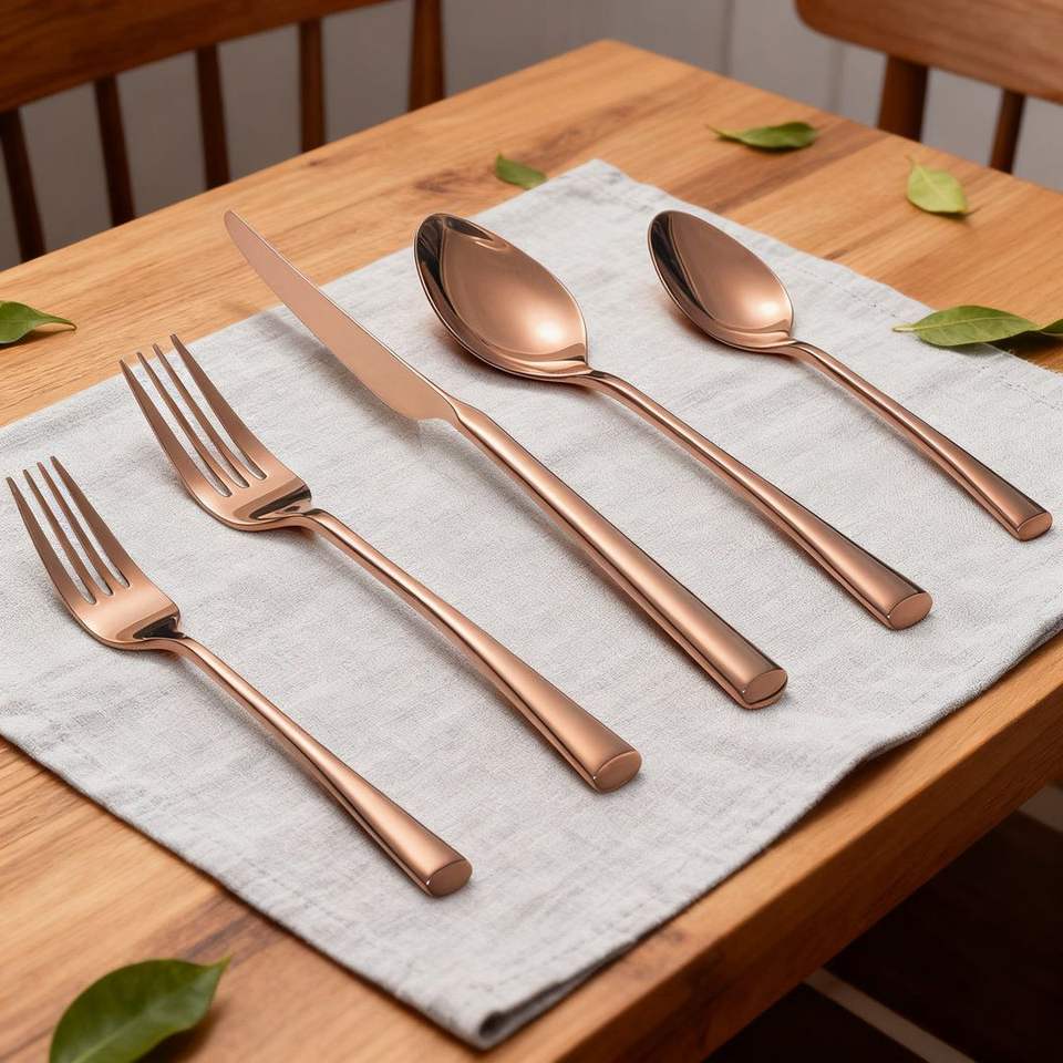 ชุดช้อนส้อมหรูหราแบบมินิมอล ดีไซน์เรียบหรู สำหรับการรับประทานอาหารอย่างมีระดับในบ้านสมัยใหม่และการตกแต่งโต๊ะอาหารระดับพรีเมียม