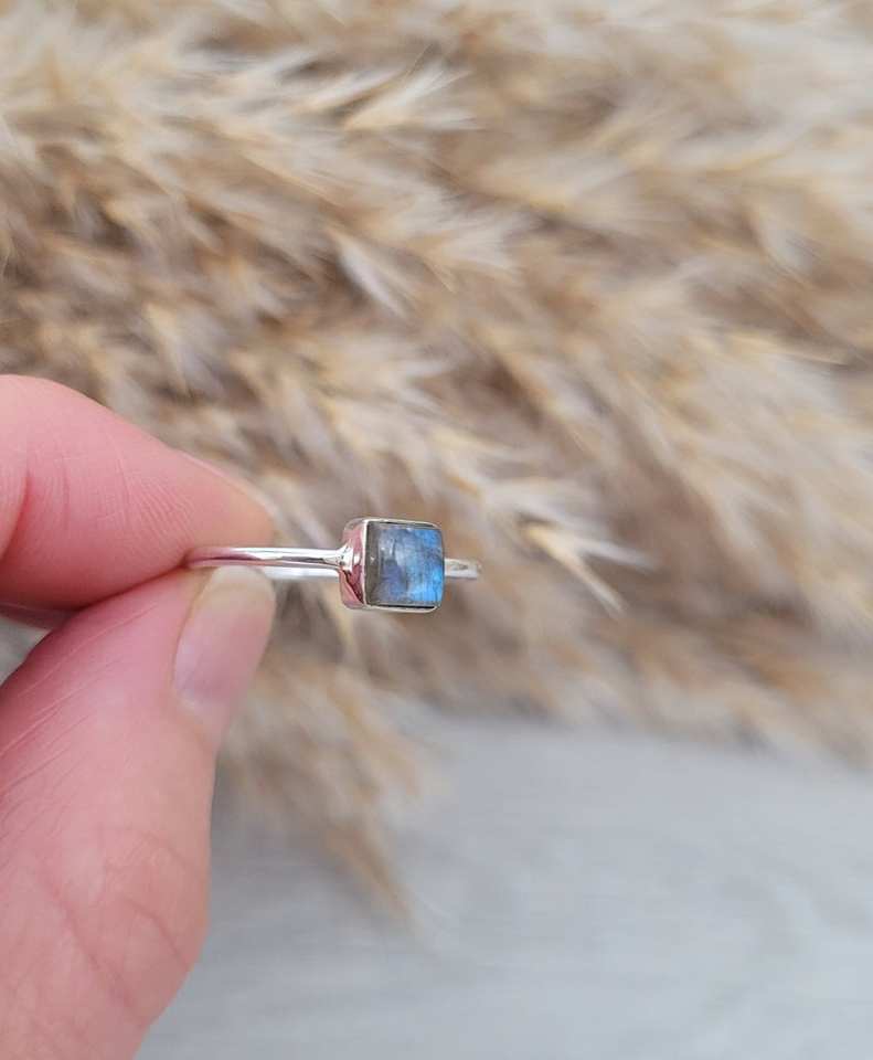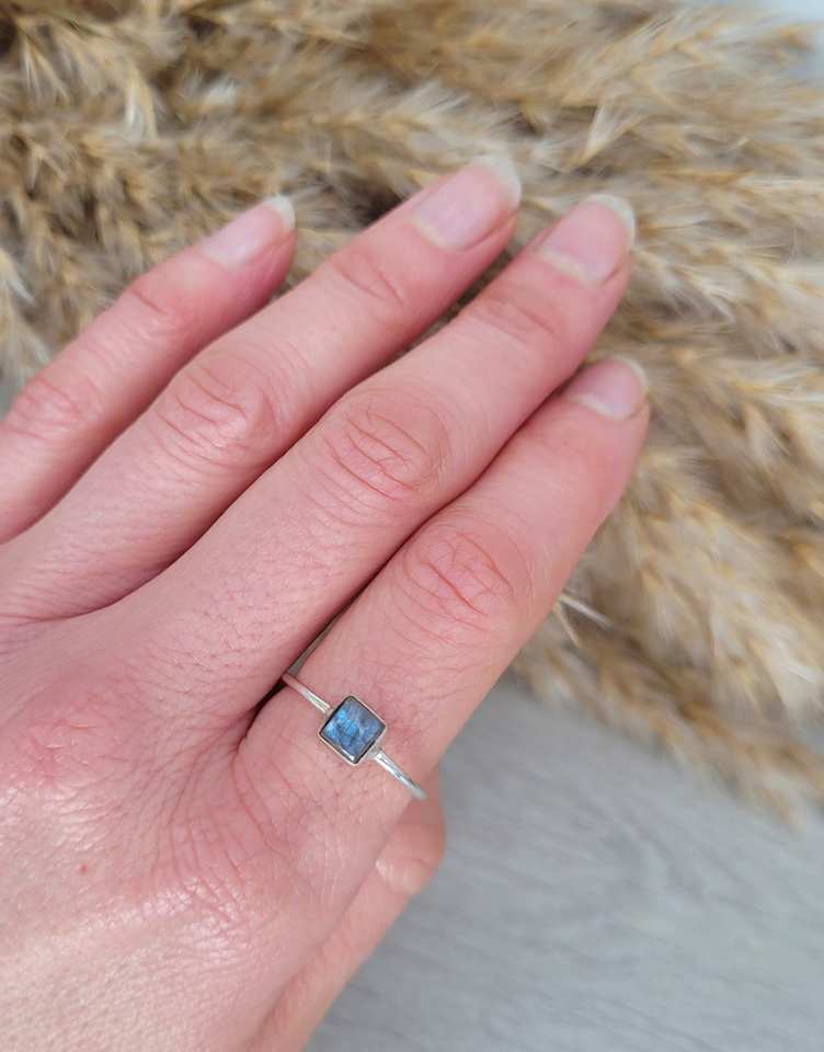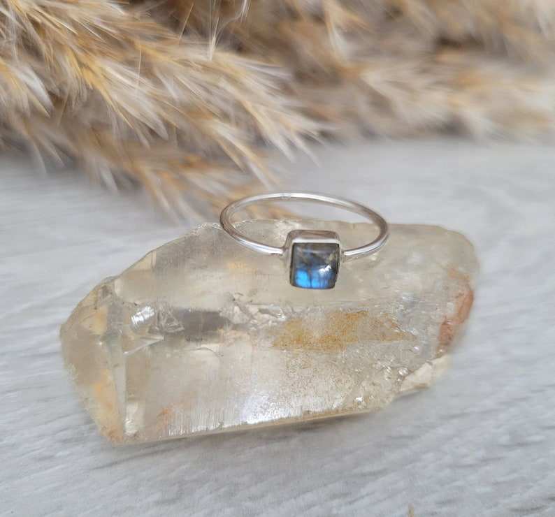 แหวนหมั้นวินเทจแบบมินิมอลเงินสเตอริงพร้อมคริสตัลสี่เหลี่ยมลาบราดอไรต์สำหรับงานแต่งงานครบรอบเครื่องประดับเพชร