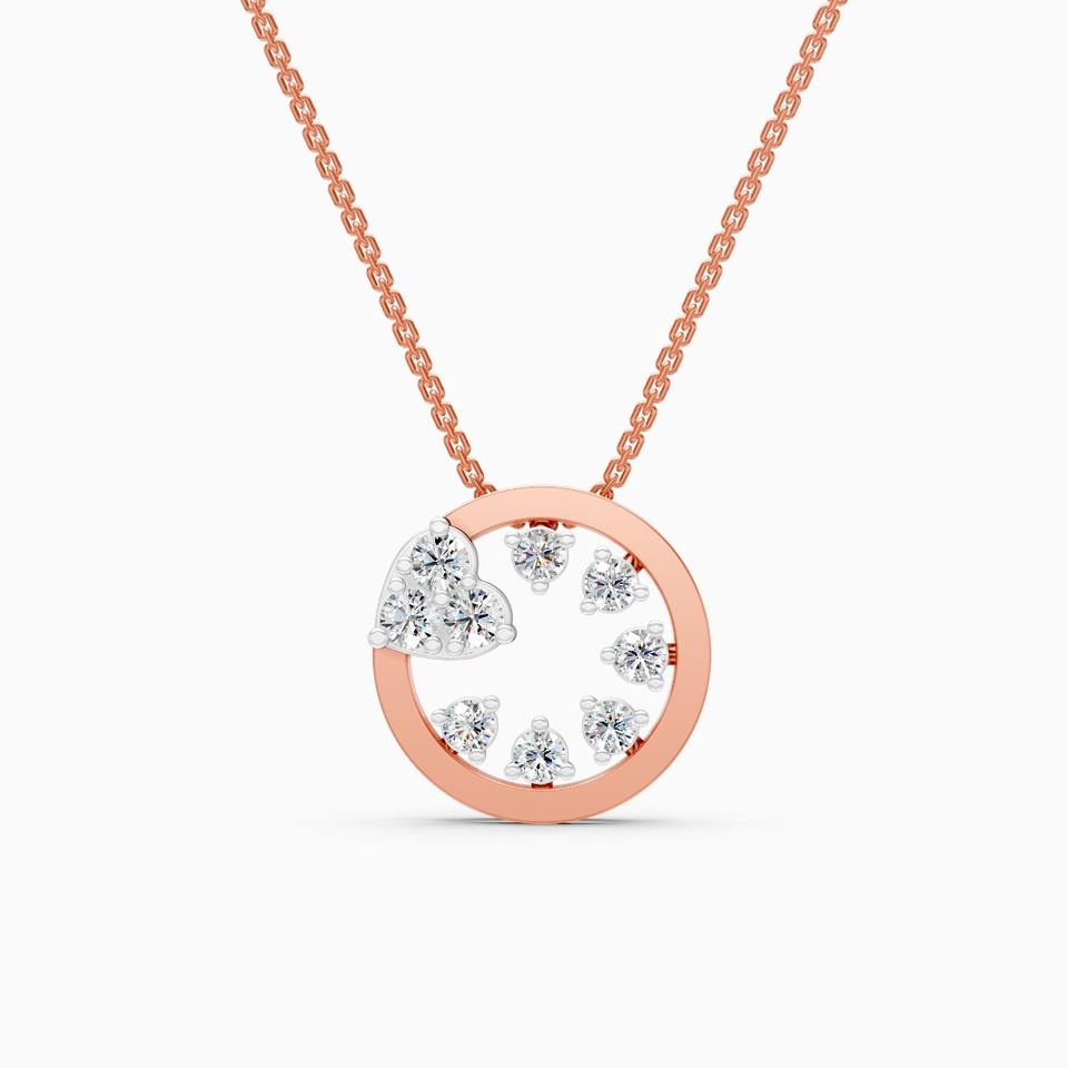 จี้เพชรทรงกลมแบบวงเปิด น้ำหนัก 0.34 กะรัต เพชรเลี้ยงในห้องปฏิบัติการ ดีไซน์มินิมอล ตัวเรือนทอง 9K สีเหลือง ขาว และโรสโกลด์