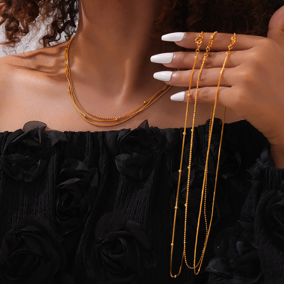 สร้อยคอผู้หญิงสแตนเลสชุบทอง 14K สไตล์มินิมอล ดีไซน์เก๋ ทรงเรขาคณิต ทนทาน เครื่องประดับแฟชั่นสำหรับงานแต่งงาน รุ่นใหม่
