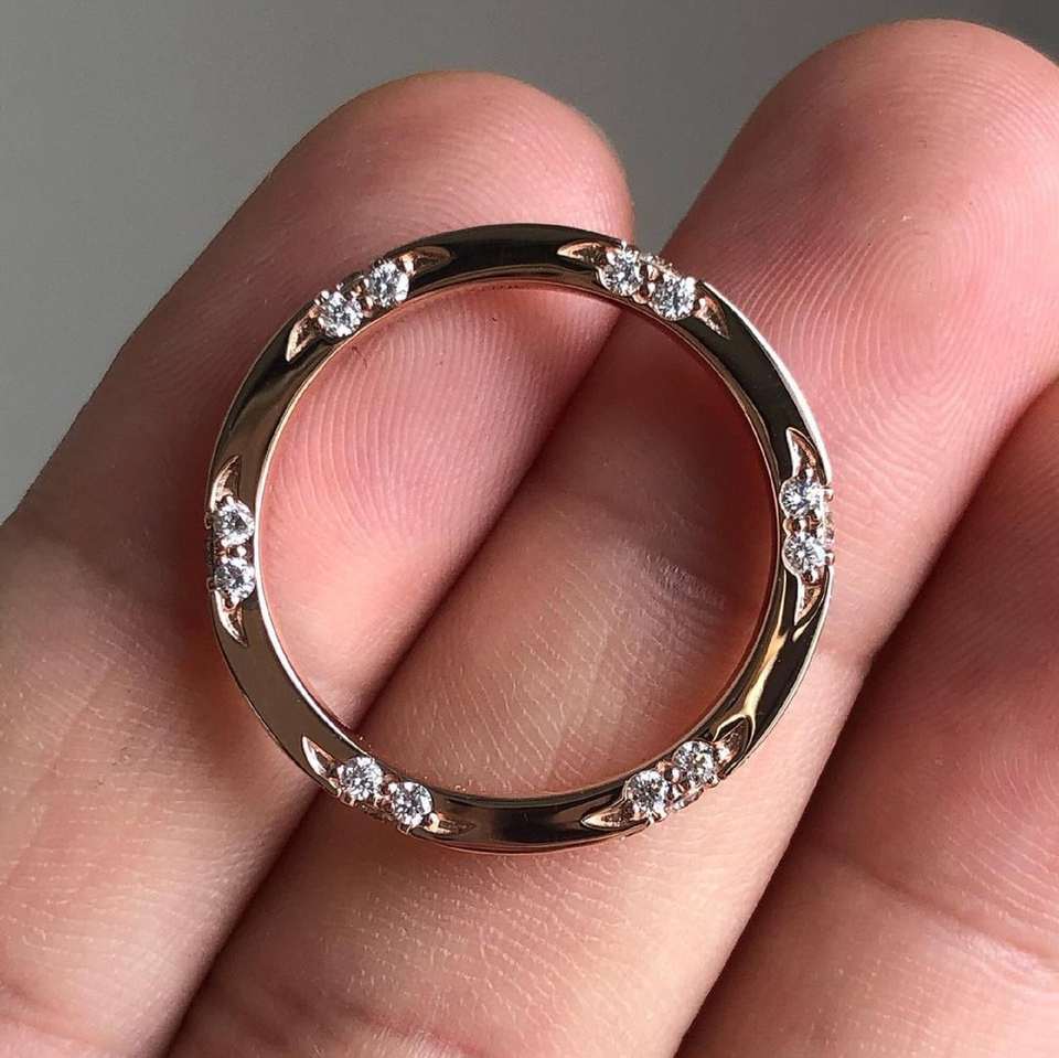 แหวนเพชรกลมตัดยอดเยี่ยมไม่เหมือนใครแหวนขนาดเล็กสีโรสโกลด์14K สำหรับงานแต่งงานของขวัญคู่รัก