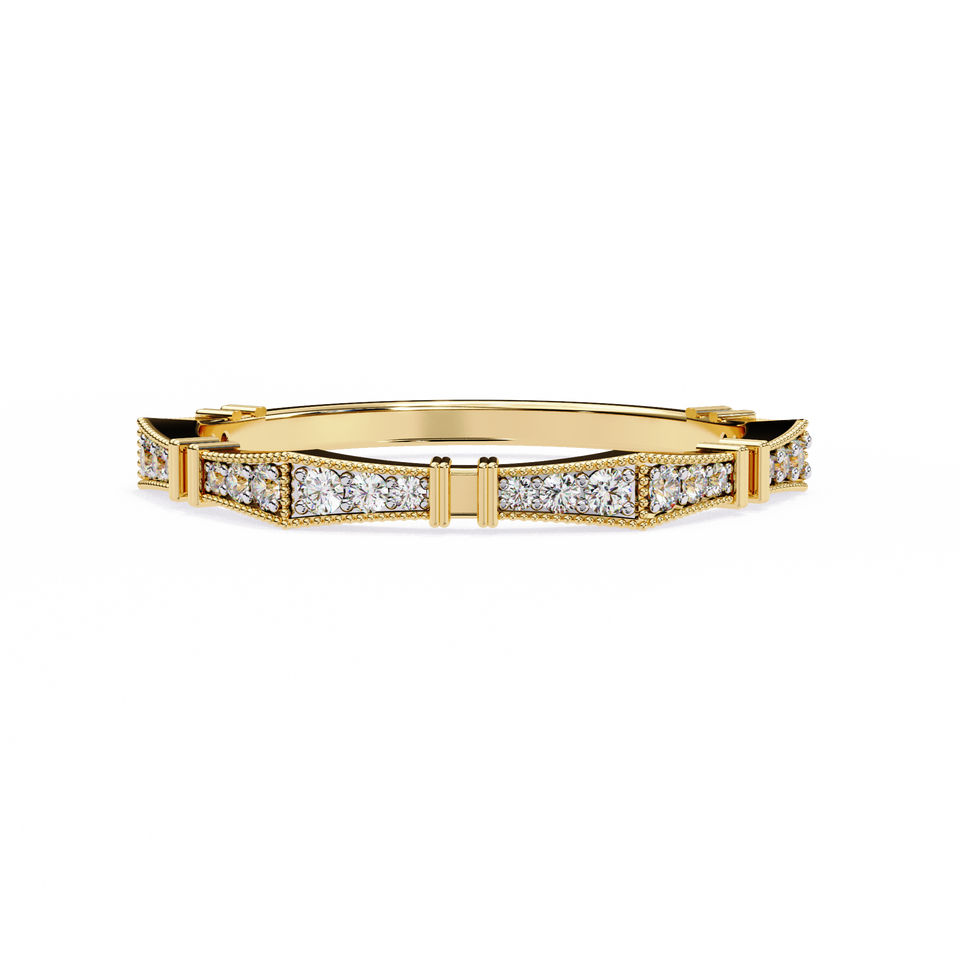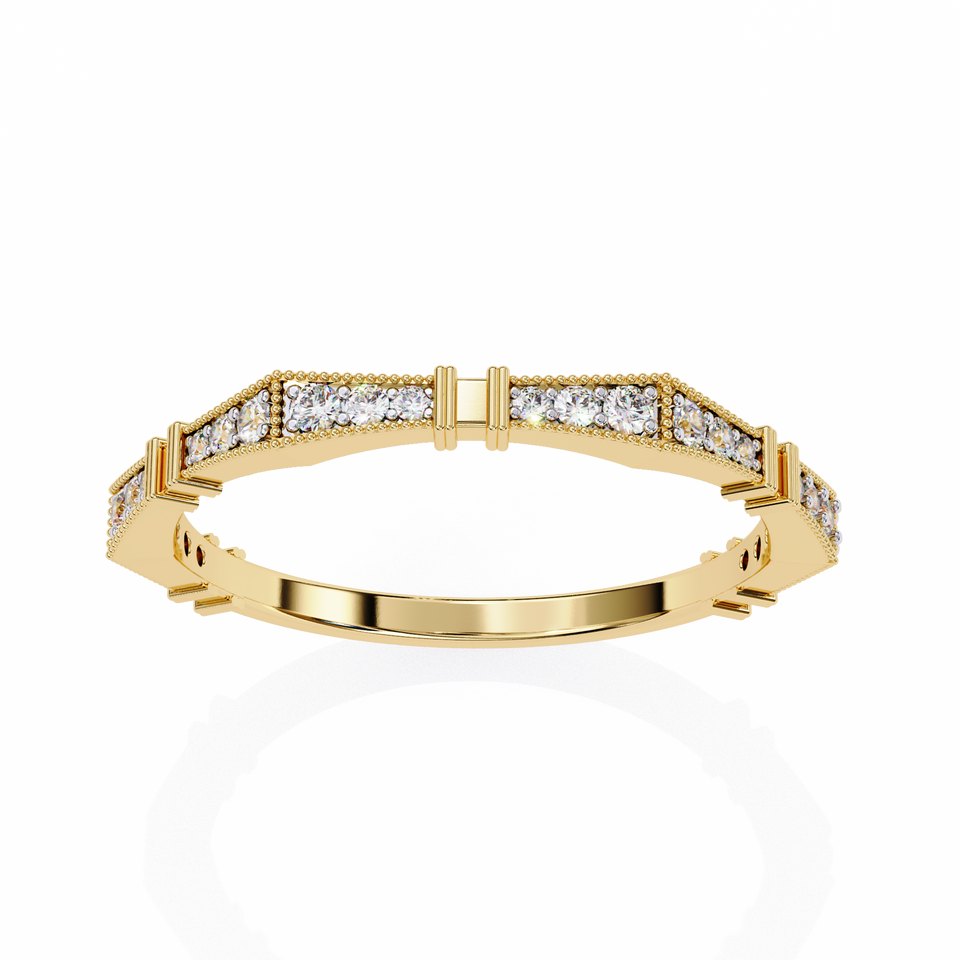 แหวนทองชุบ 14k สไตล์มินิมอล แหวนหมั้นหรูหรา ชุดแหวนแต่งงาน ได้รับการรับรองจาก IGI แหวนเพชรครึ่งวงสำหรับเธอ