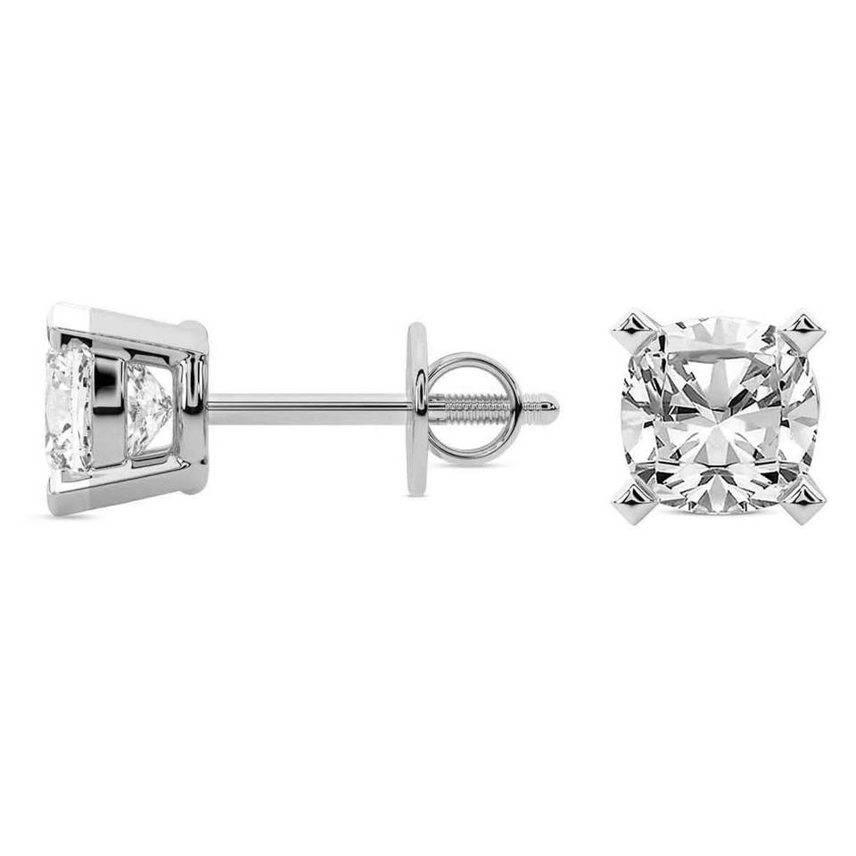 เครื่องประดับทองขาว14K แบบมินิมอลต่างหูเม็ดกลมขนาด1กะรัตสำหรับผู้หญิงเบาะเพชรสำหรับปลูกในห้องทดลองสี่แฉก