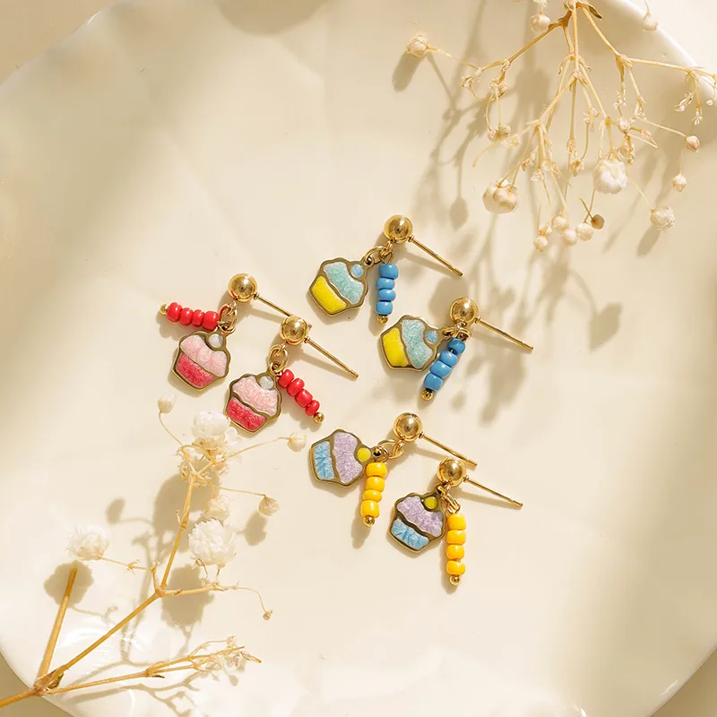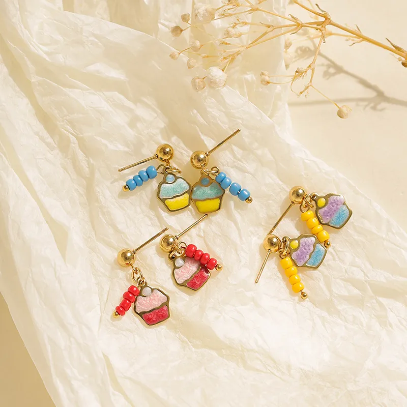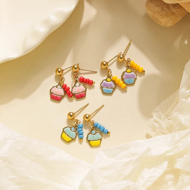 ต่างหูทำมือทรงหยดน้ำมันเคลือบทอง 18K สไตล์มินิมอล ผลิตจากสแตนเลส 304 ชุบสูญญากาศ สำหรับผู้หญิง ทันสมัย