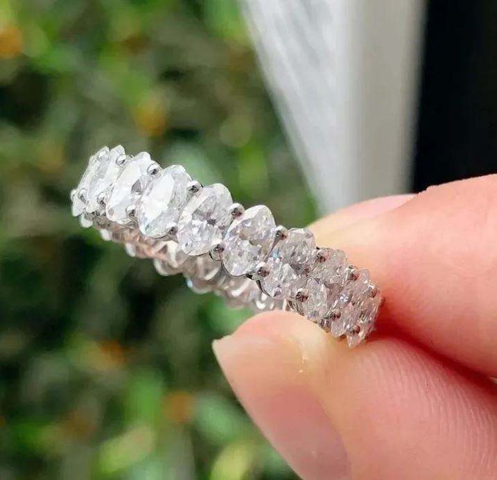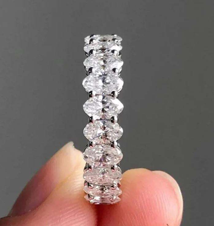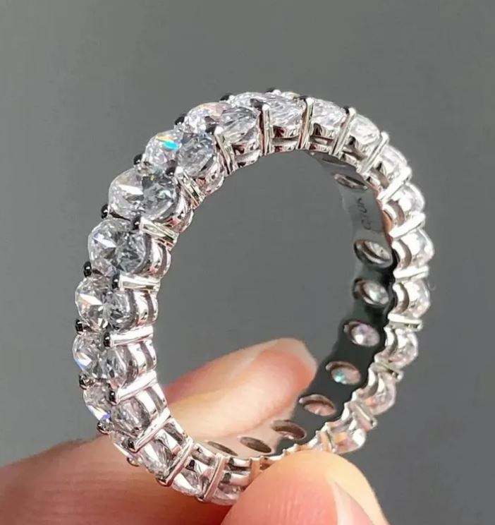 แหวนแต่งงานมินิมอลลิสต์ทรงรี 3 กะรัต ประดับโมอิสซาไนต์เต็มวง ดีไซน์เฉพาะตัว ฝังแบบช่อง ตัวเรือนเงินแท้ S925 สำหรับวันครบรอบ