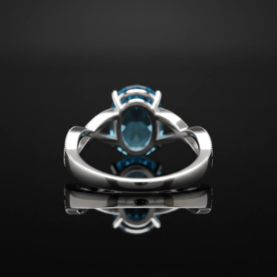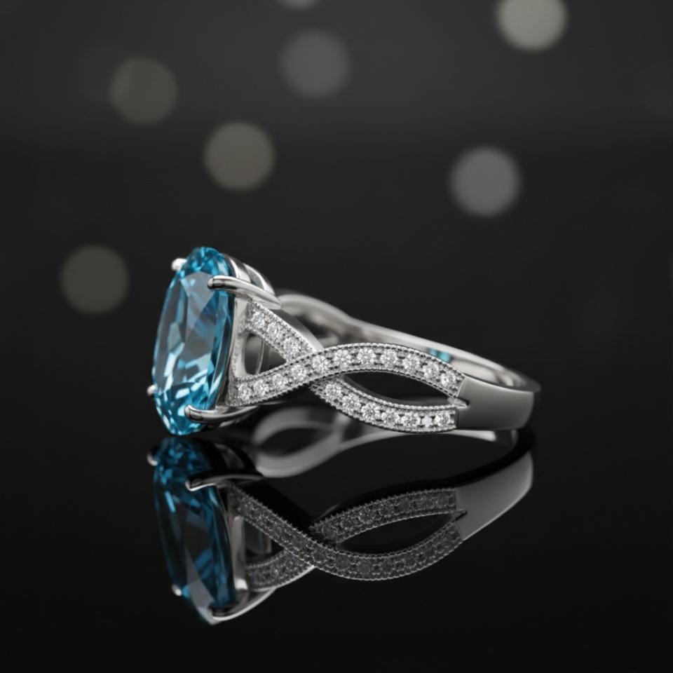 แหวนหมั้นเงินแท้ 925 สไตล์มินิมอล ประดับพลอยบลูโทแพซทรงรี ตัดแบบ Channel Setting รับรองโดยผู้เชี่ยวชาญ