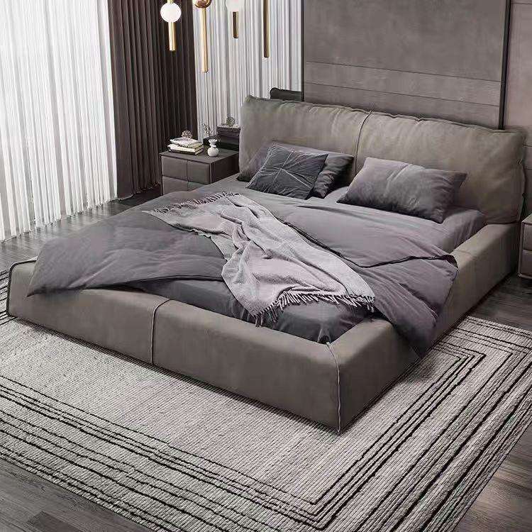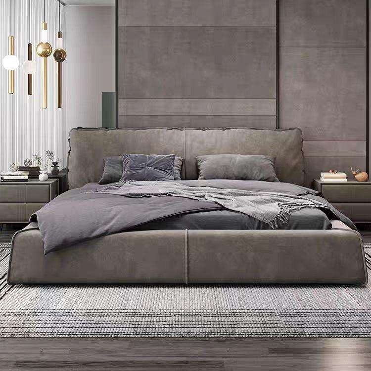 ชุดห้องนอนผู้ใหญ่สไตล์มินิมอล เตียงคู่ขนาดใหญ่ เตียงผ้ากำมะหยี่ โครงเตียงขนาดแคลิฟอร์เนียคิงไซส์ เตียงไม้