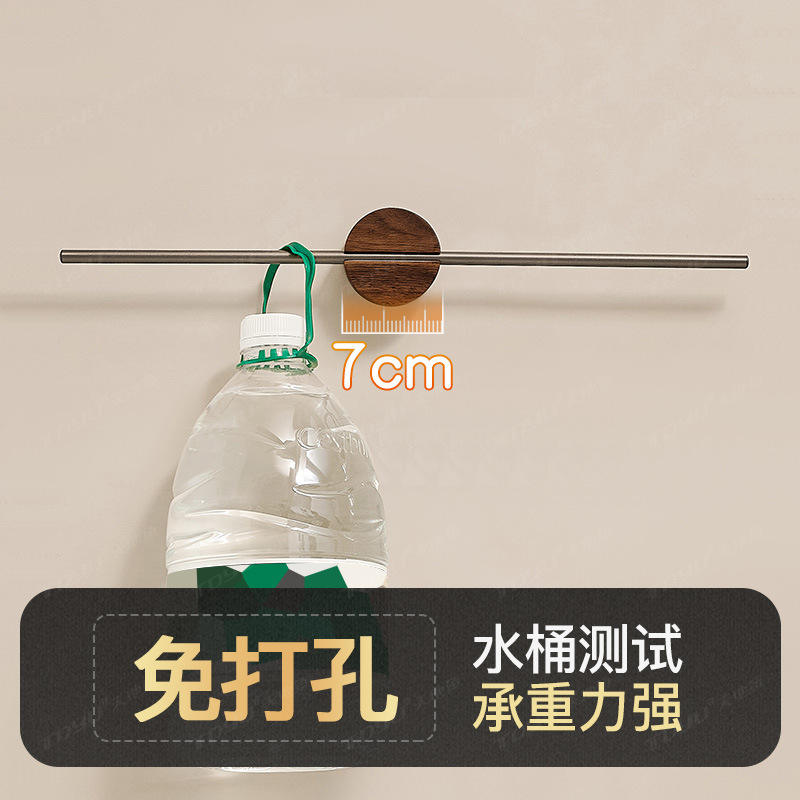 Minimalist Aluminum Alloy Towel Rack Wall Mounted Self Adhesive Walnut Wood Finish 1 Layer 1 5kg Load Capacity
