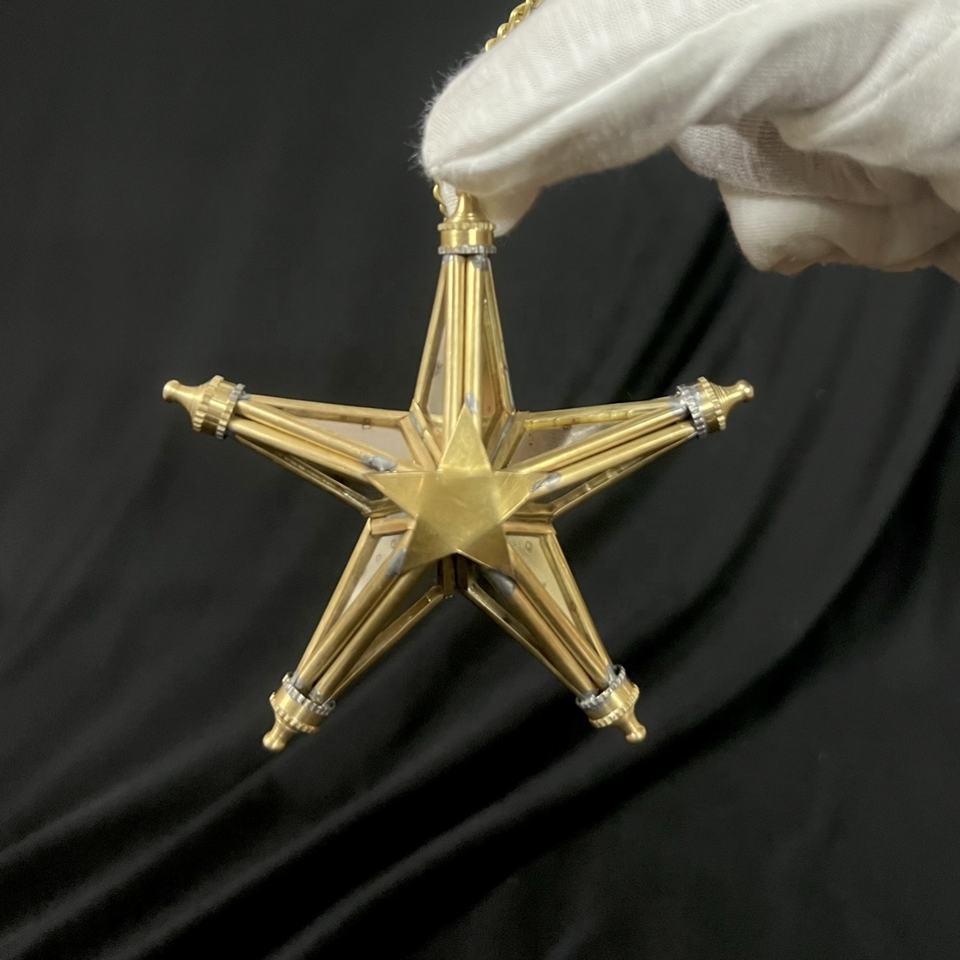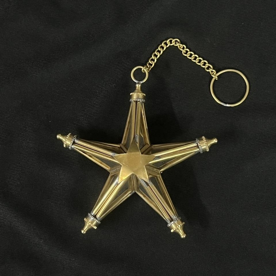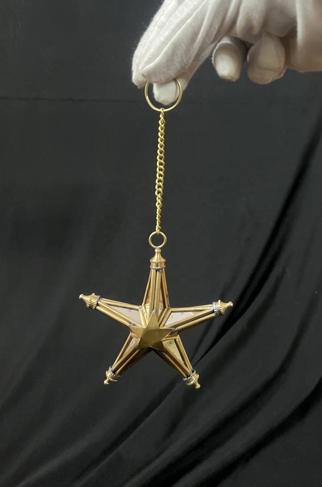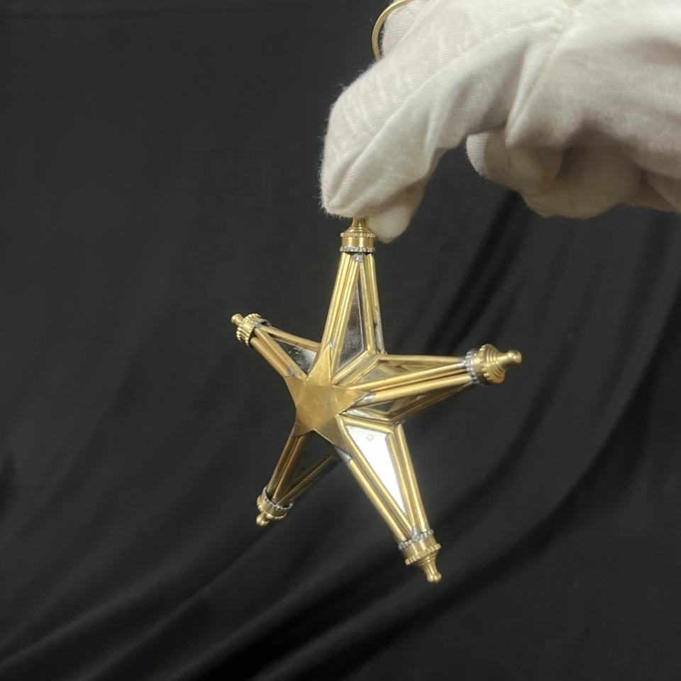 เครื่องประดับรูปดาวห้อยต้นคริสต์มาสแบบมินิมอล ทำจากแก้วเมอร์คิวรี่และทองเหลือง พร้อมสายโซ่