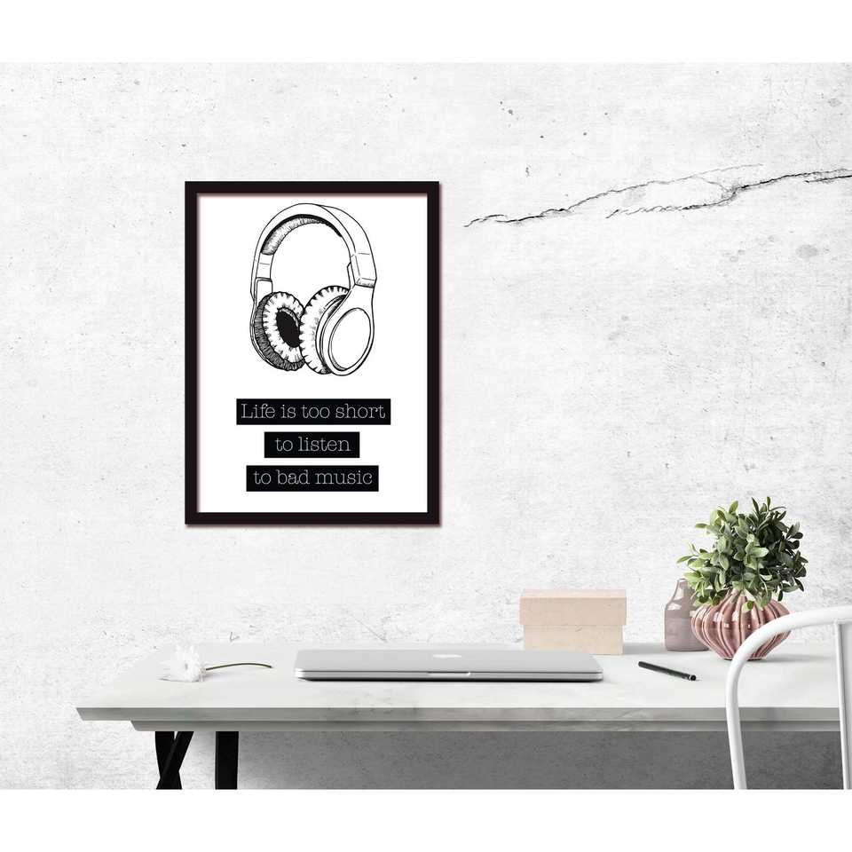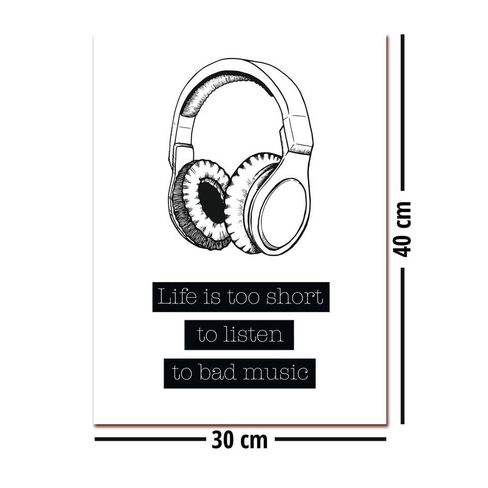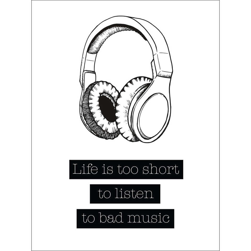 ภาพพิมพ์ศิลปะสไตล์มินิมอล - ชีวิตสั้นเกินไปเพื่อฟังเพลงที่ไม่ดี ดีไซน์ภาพนิ่งที่มีสไตล์