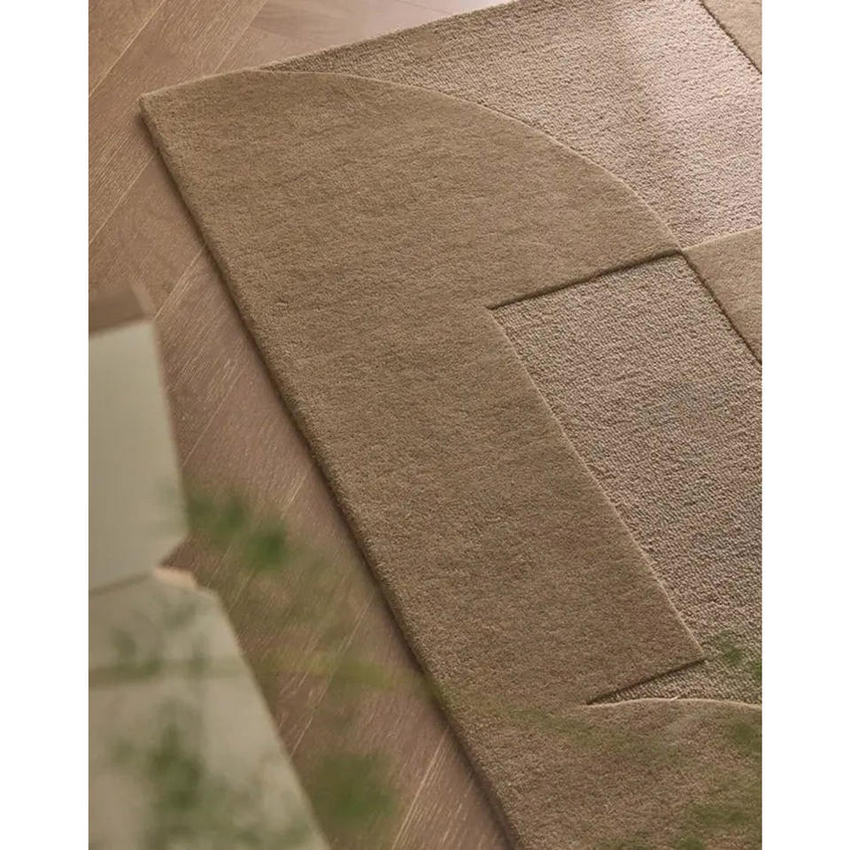 พรมขนสัตว์สีเบจแบบมินิมอลทำด้วยมือพรมทอคลุมต่ำสำหรับบ้านสมัยใหม่