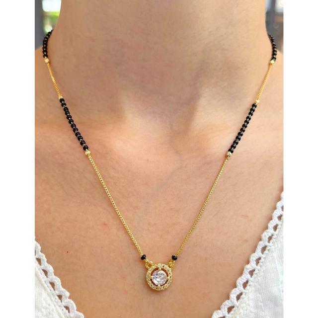 สร้อยคอลูกปัดสีดำสไตล์มินิมอลพร้อมโซ่ทองและจี้คริสตัล