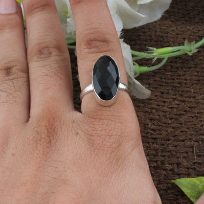 แหวนเงินแท้ประดับพลอยออนิกซ์สีดำแบบมินิมอลคลาสสิก ดีไซน์เรียบหรูสำหรับผู้หญิง เหมาะสำหรับงานแต่งงานหรือเป็นของขวัญ