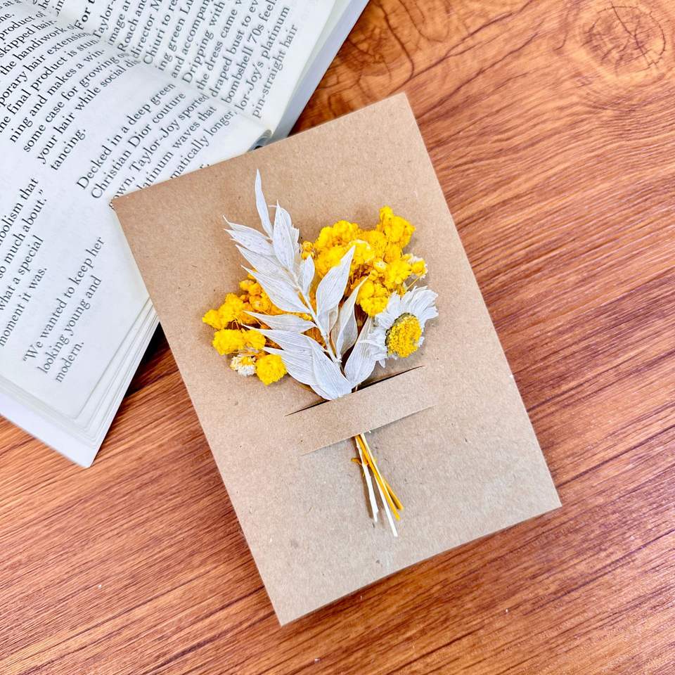 การ์ดมินิมอลสไตล์โบโฮประดับดอกยิปโซฟิล่าแห้ง สำหรับบันทึกขอบคุณ ของขวัญวันเกิด ของขวัญคริสต์มาส