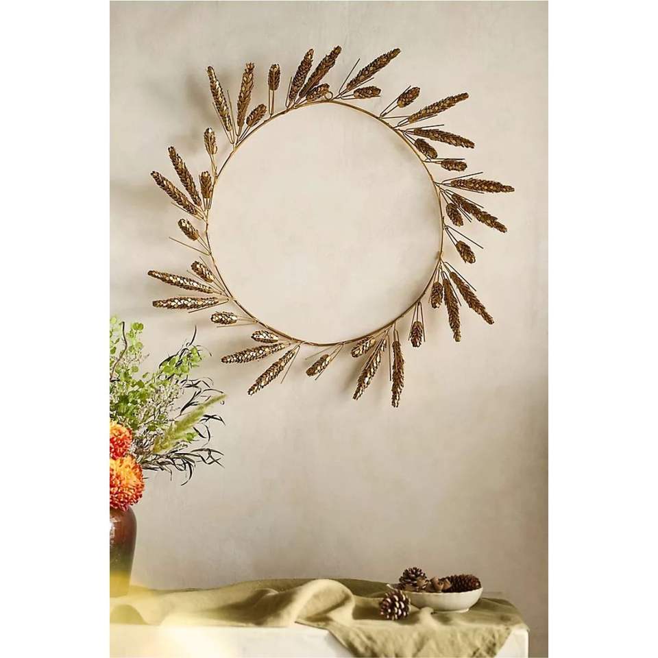 พวงหรีดติดผนังสไตล์มินิมอลโบโฮสีทอง ดูเป็นธรรมชาติ เหมาะสำหรับตกแต่งห้องนั่งเล่นและโรงแรม งานศิลปะติดผนังรูปพวงหรีดดอกไม้โลหะ ผู้จัดจำหน่าย