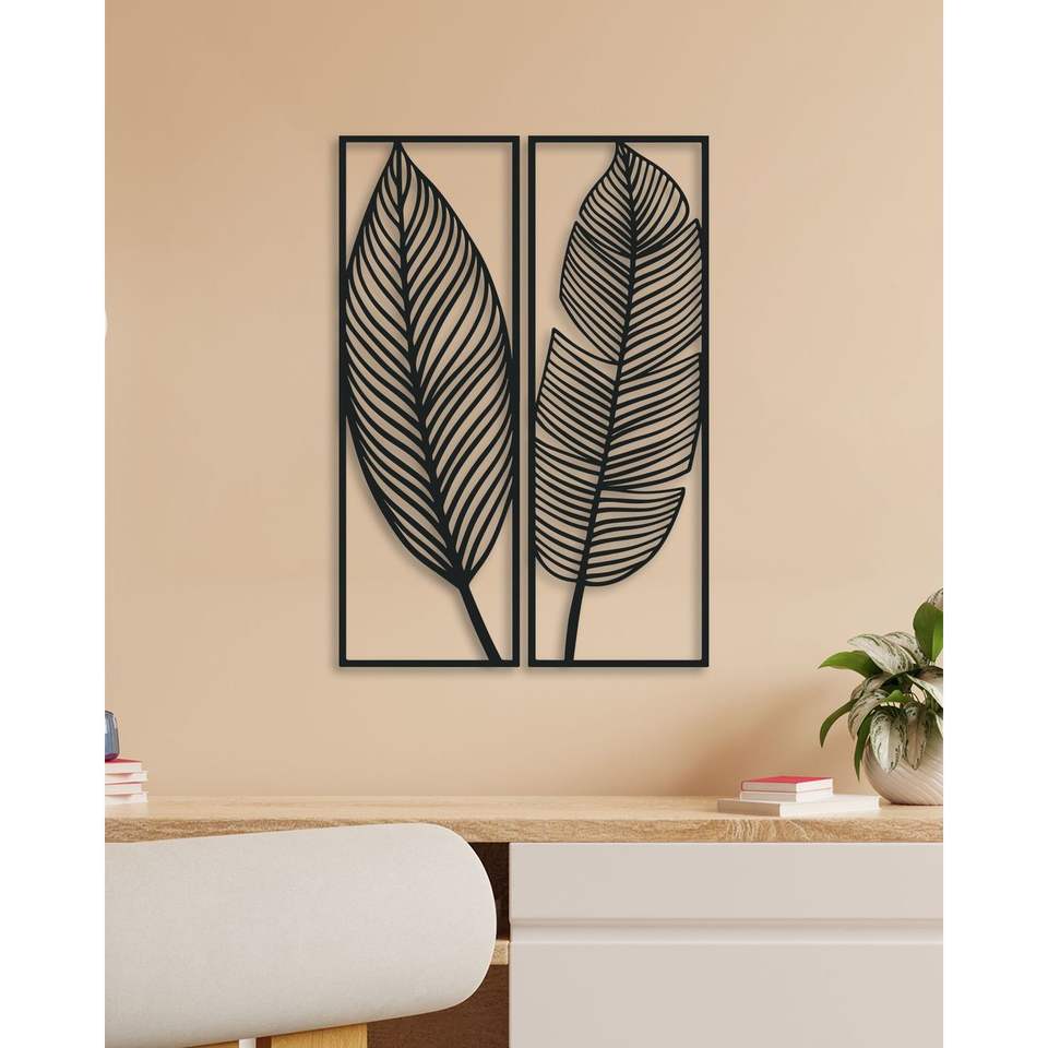 ชุดศิลปะติดผนังลายใบไม้โลหะ2ชิ้นสำหรับตกแต่งบ้านและสำนักงานดีไซน์แบบเรียบง่าย