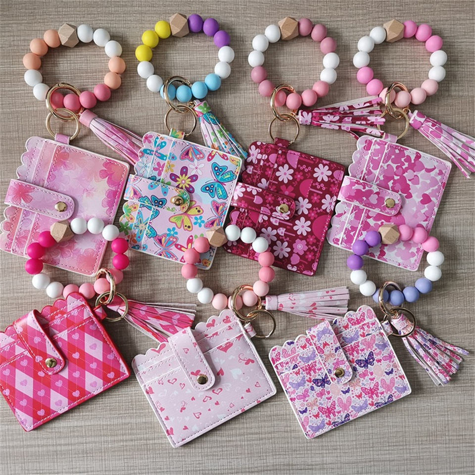 กระเป๋าพวงกุญแจสร้อยข้อมือลูกปัดซิลิโคน