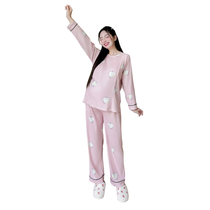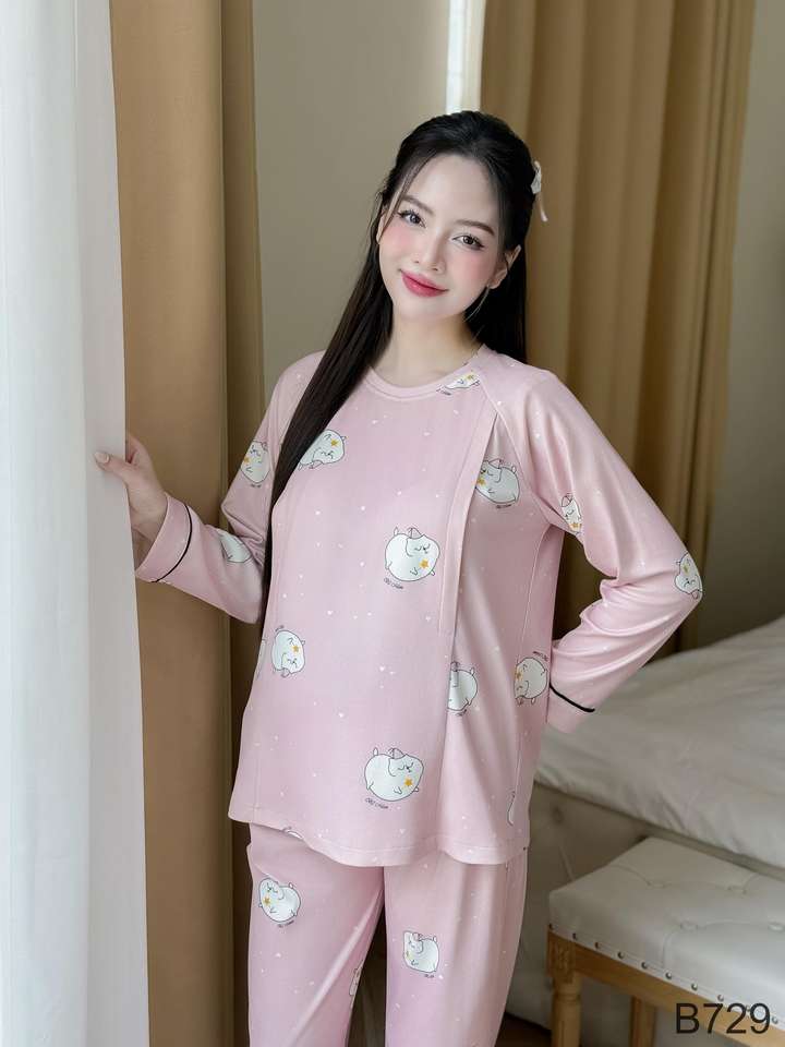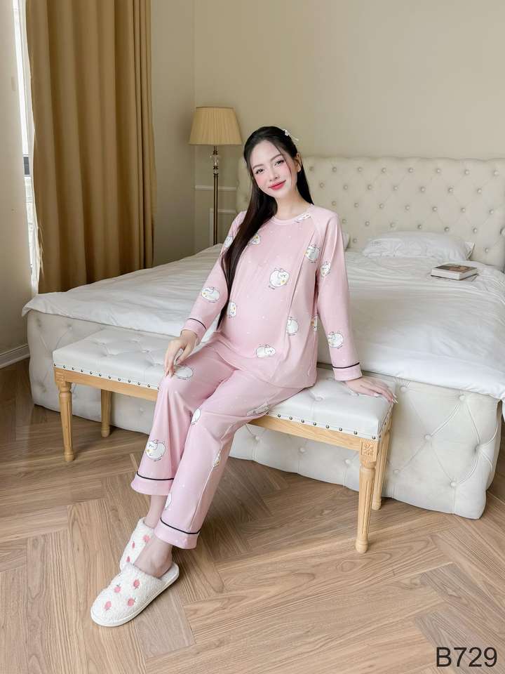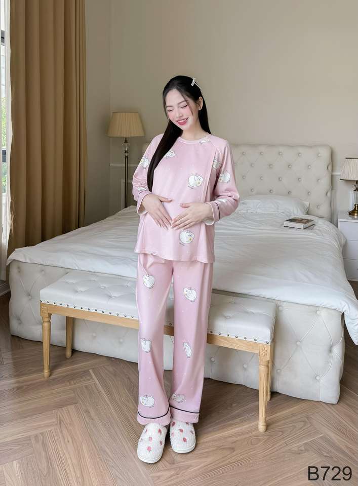 ชุดคุณแม่หลังคลอดแขนยาวแบบเรียบง่ายสบายๆเสื้อผ้าคอตตอน B729ีไซน์ที่กำหนดเองดูดซับได้ดี