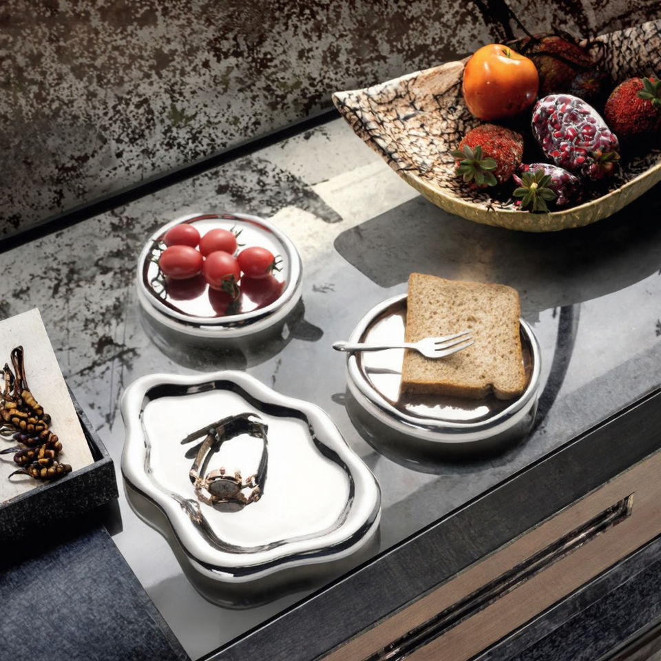ถาดใส่เครื่องประดับเซรามิคทรงไม่สมมาตรสไตล์มินิมอลสมัยใหม่ ชุบเงิน แพ็คหลายชิ้น