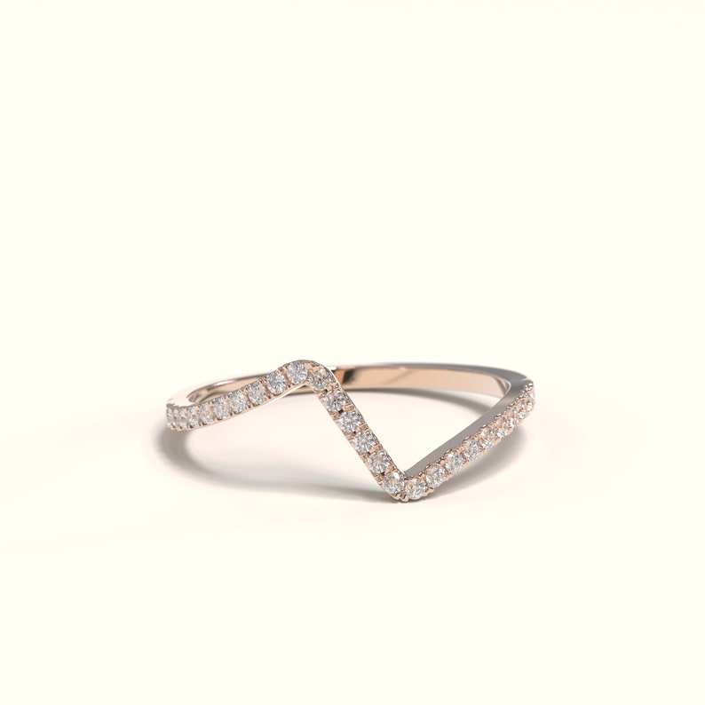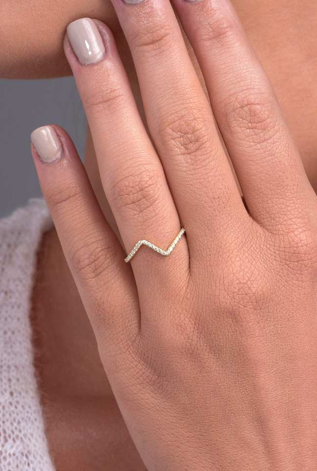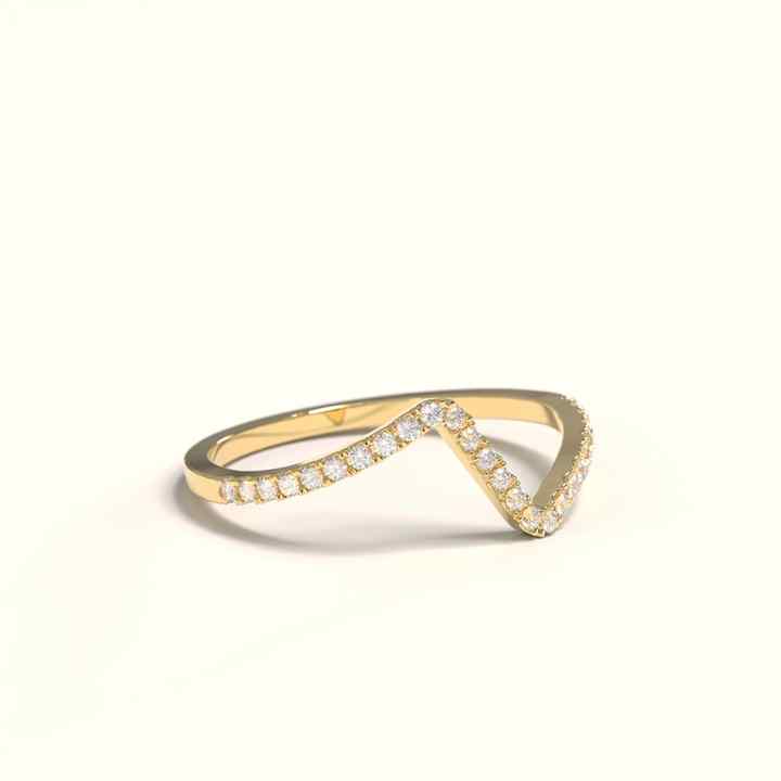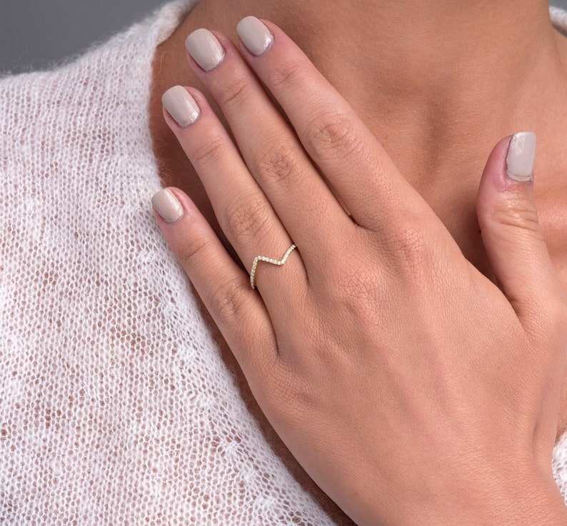 แหวนเพชรประดับรูปตัววีหรูหราดีไซน์แบบมินิมอลสีทอง14K ดีไซน์พิเศษแหวนเพชรทรงโค้งครึ่งนิรันดร์