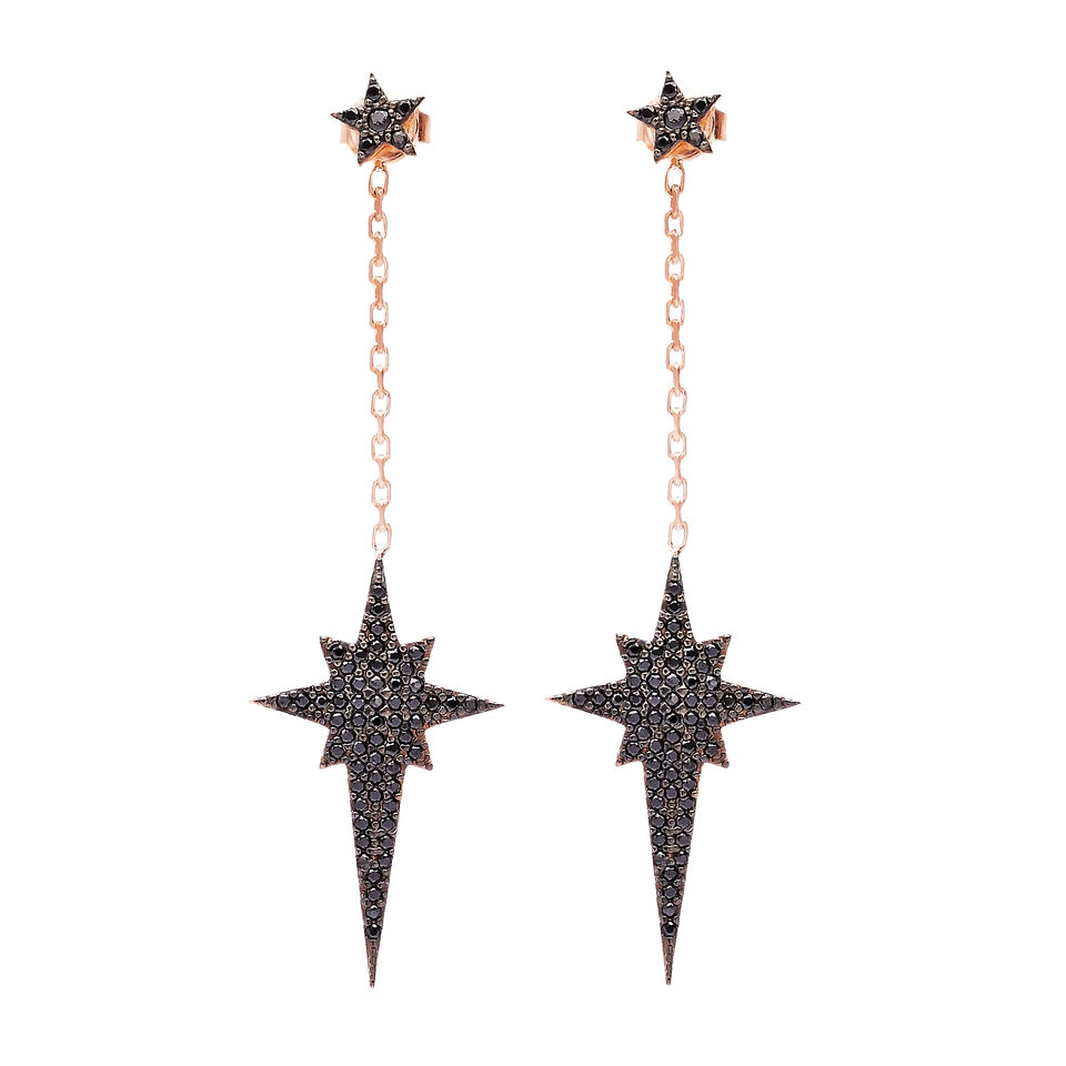 การออกแบบที่เรียบง่ายแจ็คเก็ตหู North Star สีดำเพทายหินตุรกีแฮนด์เมดขายส่ง925ต่างหูเงิน