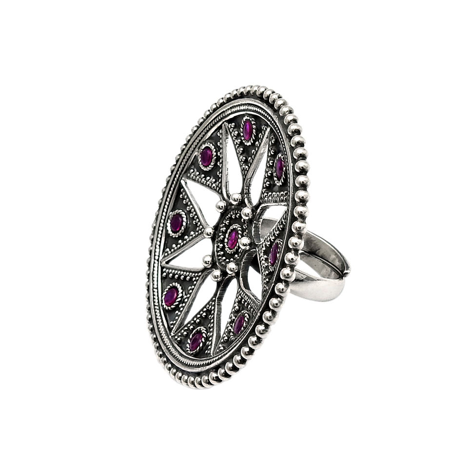 การออกแบบที่เรียบง่ายทำด้วยมือเครื่องประดับที่ดี925สเตอร์ลิงพลอยทับทิมธรรมชาติประดับลูกปัดดีไซน์เนอร์แหวน Vermeil สำหรับงาน OEM