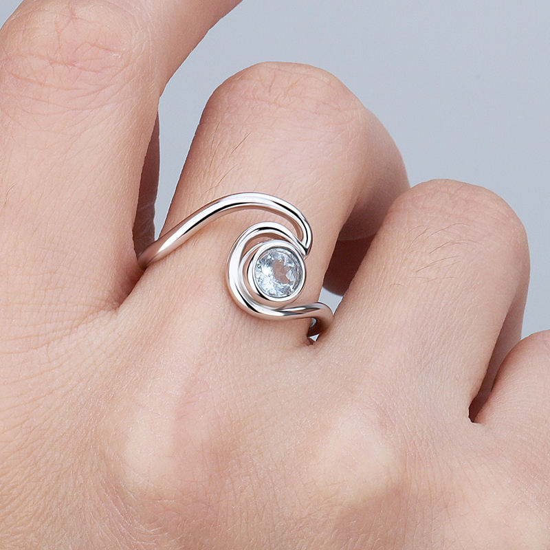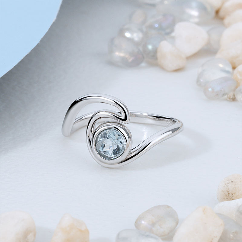 Minimalist Design Inspired by Ocean Waves Healing Aquamarine Gemstone Fresh Marine-Style Minimalist Wave Swirl Ring