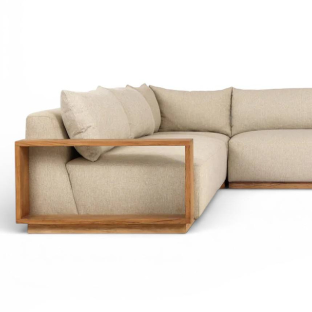 ชุดโซฟาเข้ามุมรูปตัวแอล ดีไซน์มินิมอล โครงไม้สัก สำหรับตกแต่งบ้านและสวน