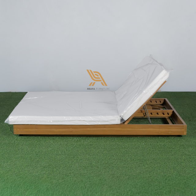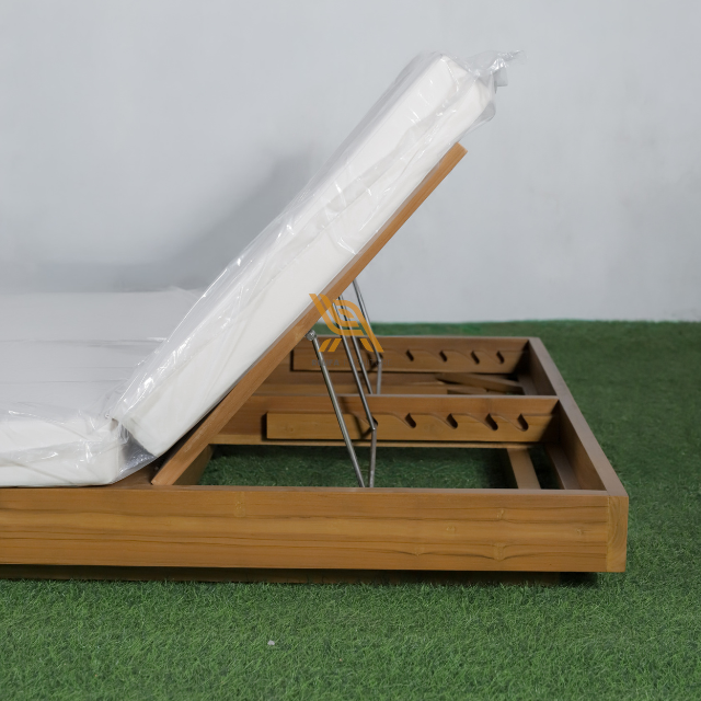 เก้าอี้นอนพักผ่อนกลางแจ้งแบบเรียบง่ายเก้าอี้อาบแดดทำจากไม้สักสำหรับเฟอร์นิเจอร์บ้านและการตกแต่งโรงแรม