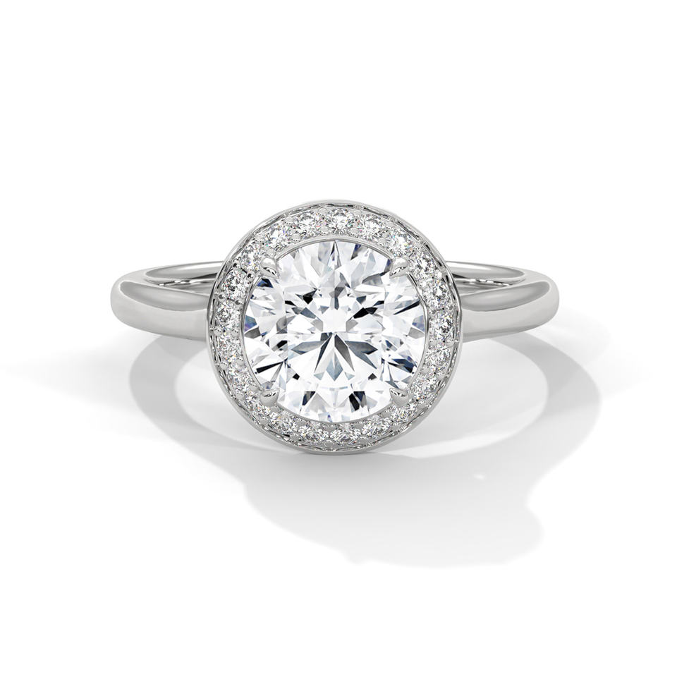 แหวนเพชรทรงมินิมอลประดับเพชรด้านข้าง ผลิตจากทองคำขาว 14K แหวนหมั้นที่ดีที่สุดพร้อมเพชรทรงกลมที่เพาะเลี้ยงในห้องปฏิบัติการ