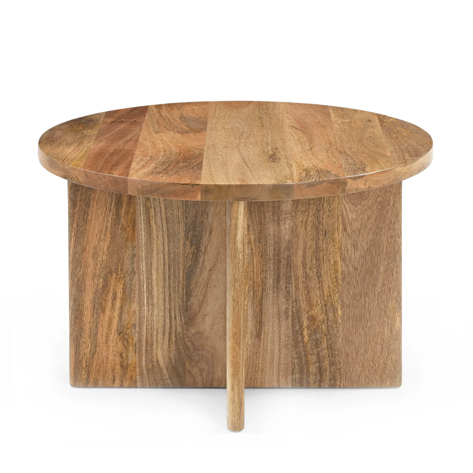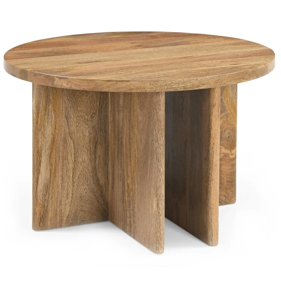 โต๊ะรับประทานอาหารไม้มะม่วงแท้ทรงกลม ขาไขว้สไตล์โมเดิร์น ดีไซน์มินิมอล ขนาดสั่งทำได้ ผิวไม้ลายธรรมชาติ