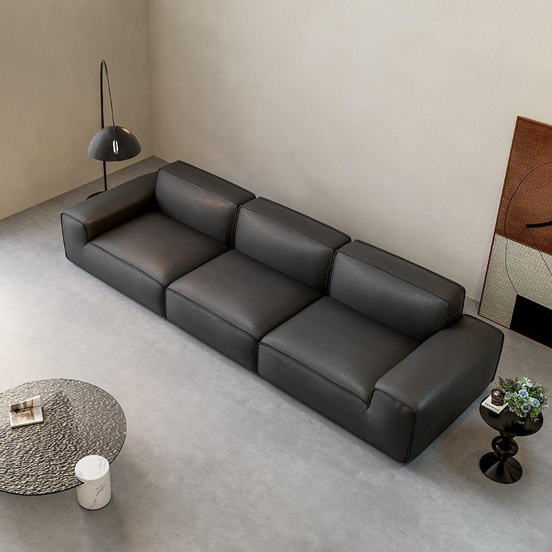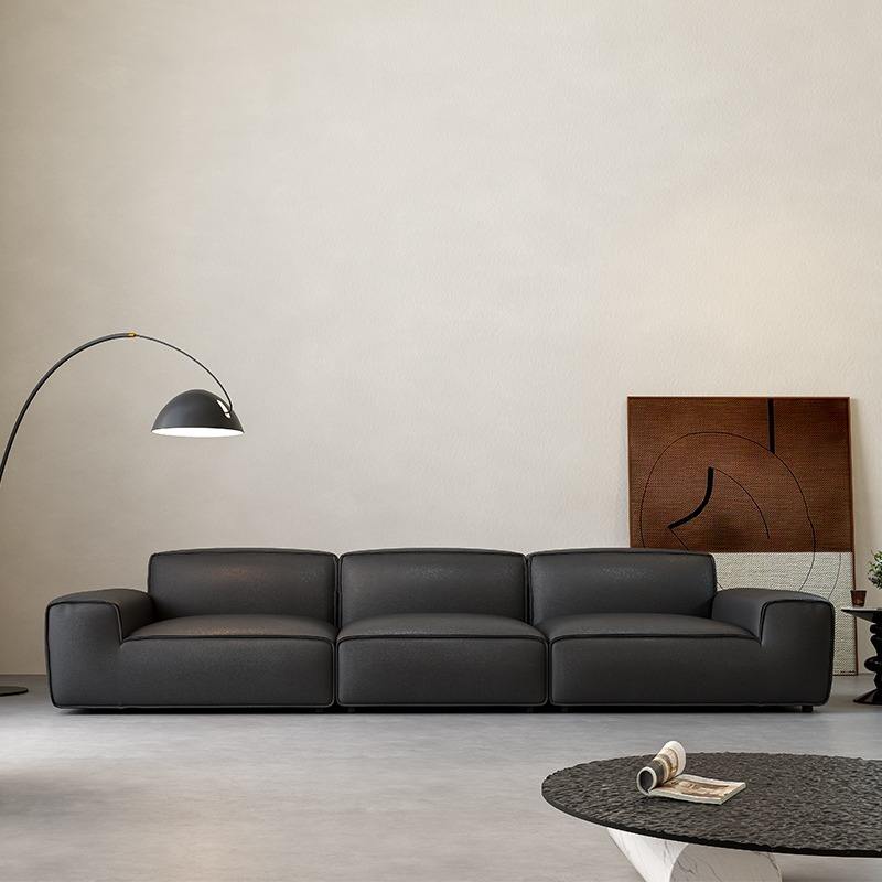โซฟาหนังสีดำดีไซน์มินิมอล รูปทรงตรง บุฟองน้ำ เฟอร์นิเจอร์ห้องนั่งเล่น