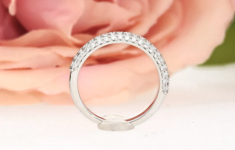 แหวนแต่งงานสแตนเลสสตีลประดับเพทายแบบมินิมอล แหวนซ้อนแบบครึ่งวงสำหรับผู้หญิง แฟชั่นชุบเงิน/แพลตตินั่ม