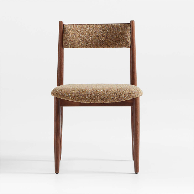 เก้าอี้รับประทานอาหารที่เรียบง่ายพร้อมที่นั่งผ้าหุ้มและกรอบไม้