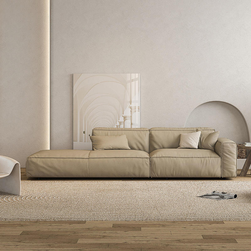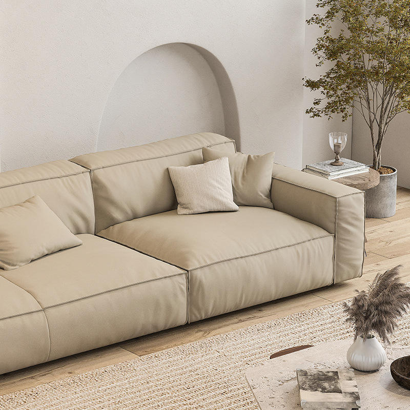 โซฟาแบบมินิมอล ชีสเลานจ์ โมดูลาร์ เฟอร์นิเจอร์ห้องนั่งเล่น หนังนัปป้า บุโฟมเต็มด้าน