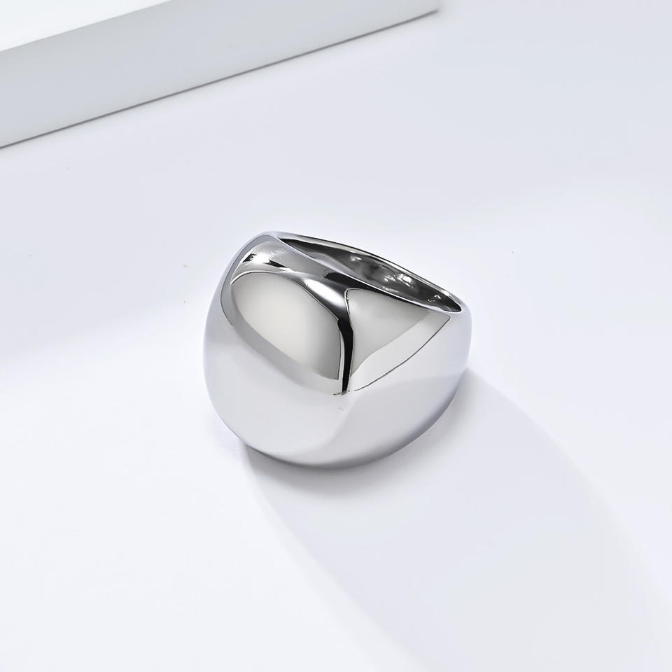 แหวนไทเทเนียมสตีลชุบทองคำขาว ดีไซน์มินิมอลแบบโอเวอร์ไซส์ เครื่องประดับแฟชั่นสำหรับทุกเพศ เหมาะเป็นของขวัญ สแตนเลสสตีล นำเข้าจากต่างประเทศ