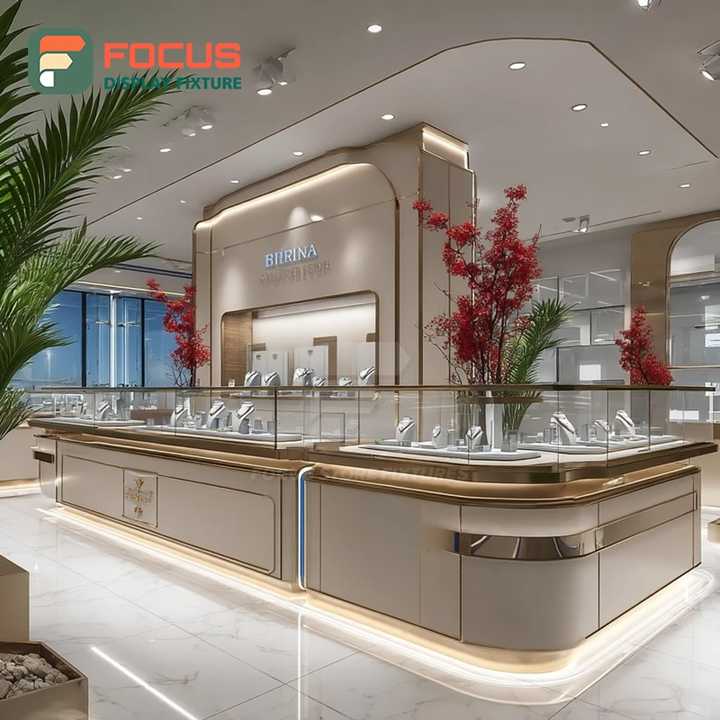 ระบบจัดแสดงเครื่องประดับแบบมินิมอลสุดหรู พร้อมเคลือบผิวอย่างดี ตู้โชว์สำหรับเคาน์เตอร์ในห้างสรรพสินค้า