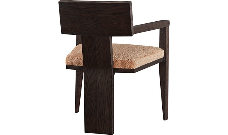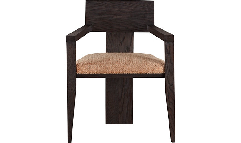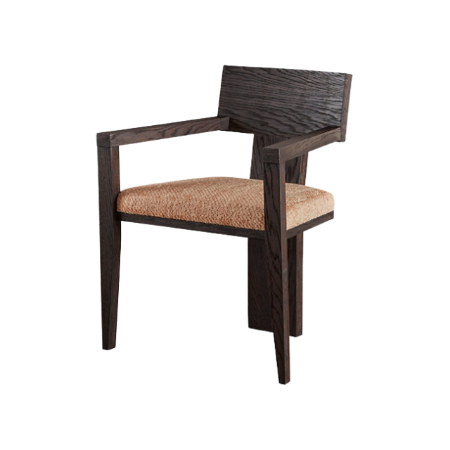เก้าอี้ไม้สีน้ำตาลเข้มทรงเรขาคณิตสไตล์มินิมอลพร้อมพนักพิงรูปตัว T กว้างที่โดดเด่น