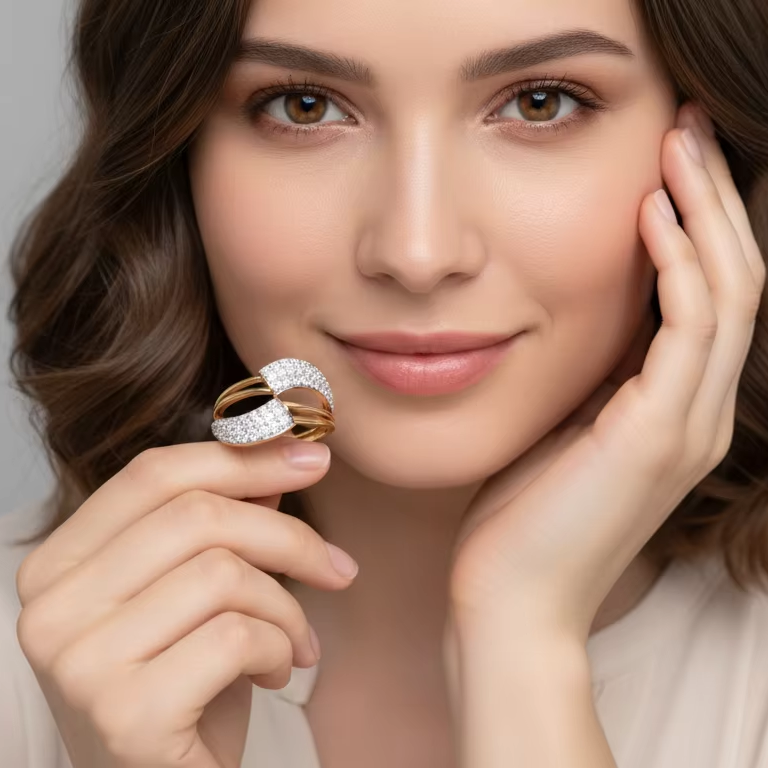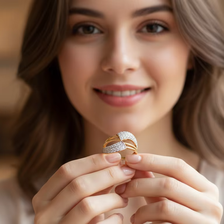 แหวนเพชรทรงเรขาคณิตแบบมินิมอล ดีไซน์ลายคลื่น คุณภาพสูง ทองคำแท้ เหมาะสำหรับงานแต่งงานและงานเลี้ยง