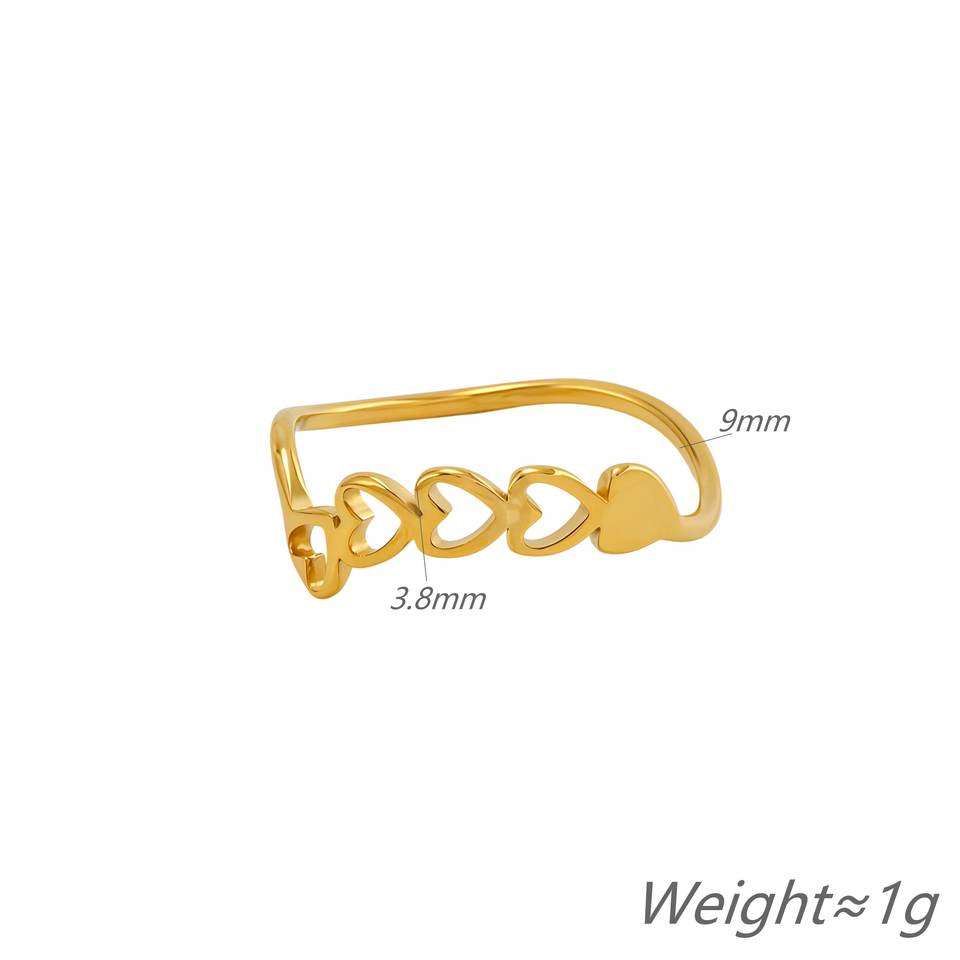 แหวนสแตนเลสสตีลชุบทอง 18K ดีไซน์หัวใจโปร่งแบบมินิมอล สามารถสวมซ้อนกันได้ เหมาะสำหรับผู้หญิง