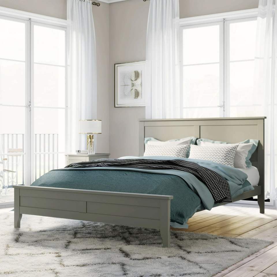โครงเตียงสีเทามินิมอลพร้อมการออกแบบแพลตฟอร์ม