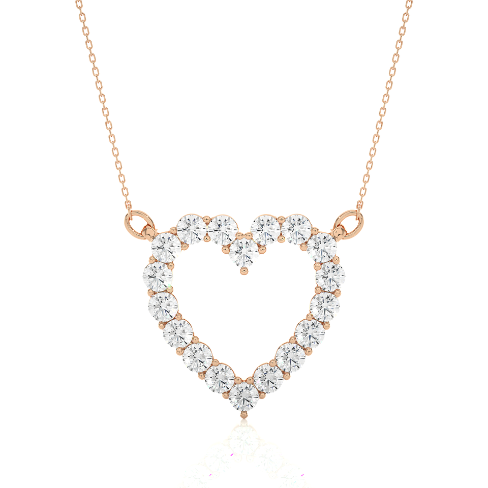 สร้อยคอหัวใจที่เรียบง่ายสําหรับผู้หญิง VVS ความชัดเจนรอบตัด Lab ปลูกเพชรสร้อยคอหัวใจกลวงในทองคําแท้ 14k