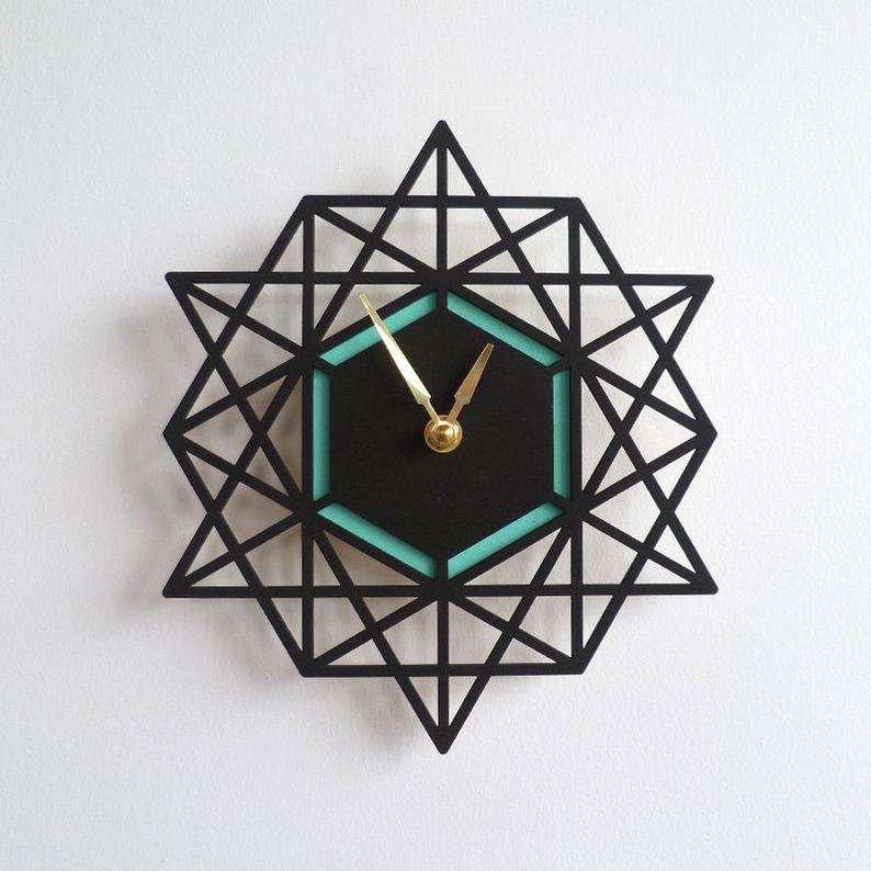 นาฬิกาแขวนผนังรูปดาวหกเหลี่ยมสไตล์มินิมอล ดีไซน์โปร่งแบบนามธรรม พร้อมเข็มสีทอง ระบบควอตซ์ ตกแต่งผนัง